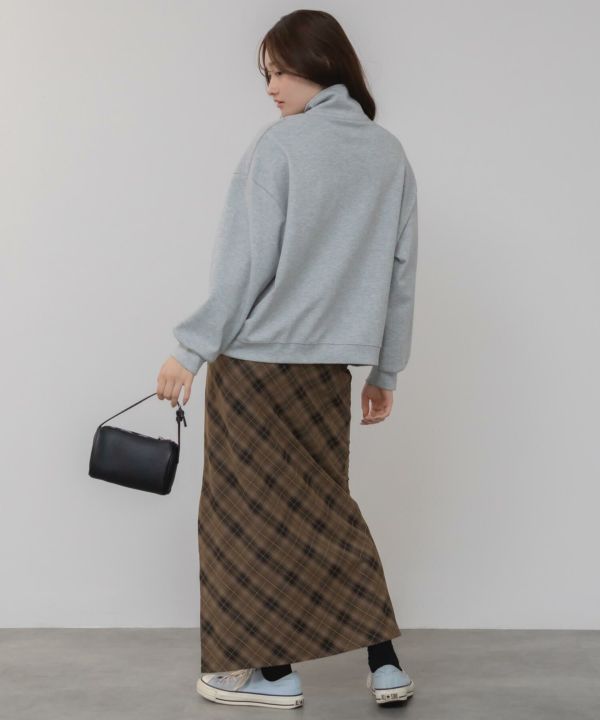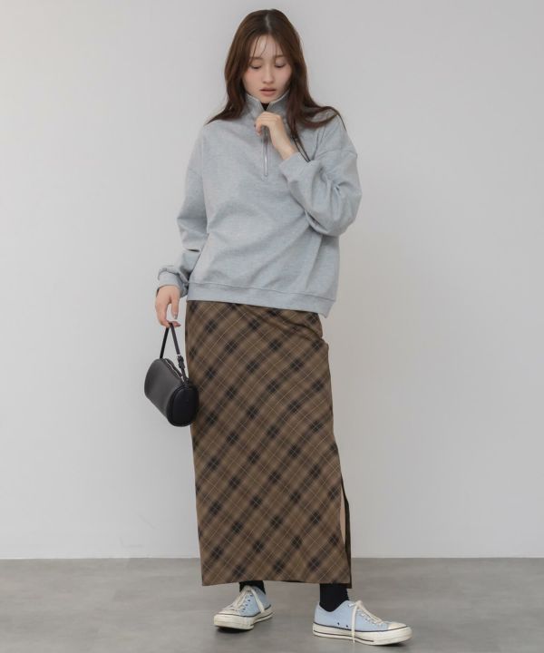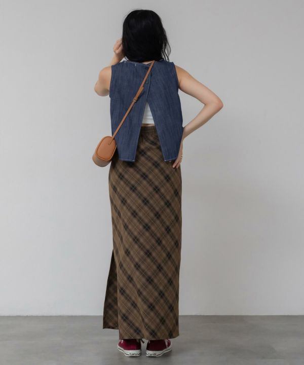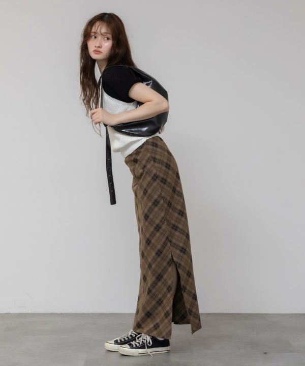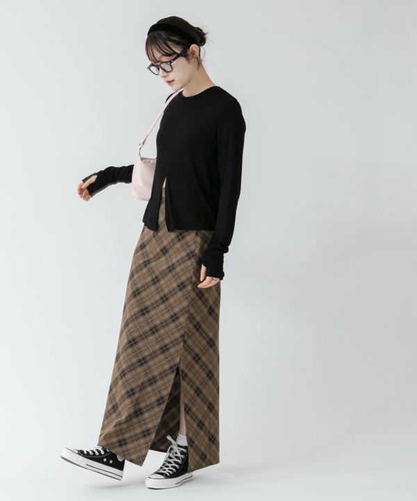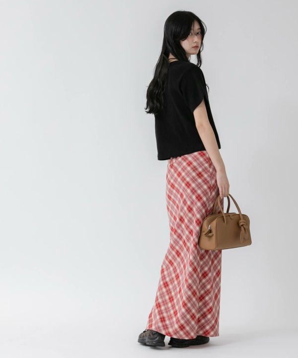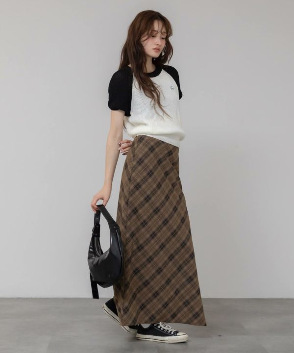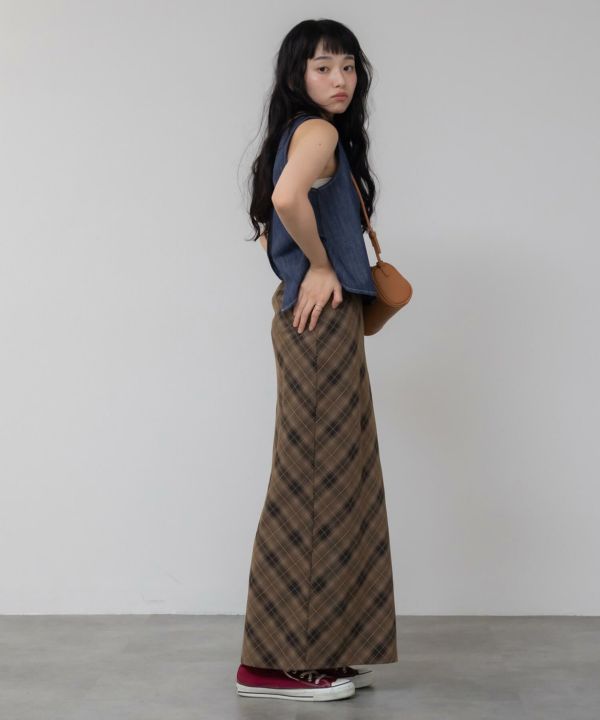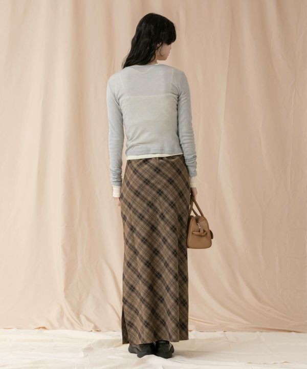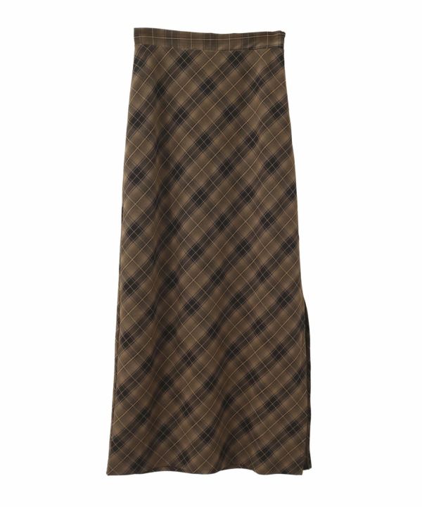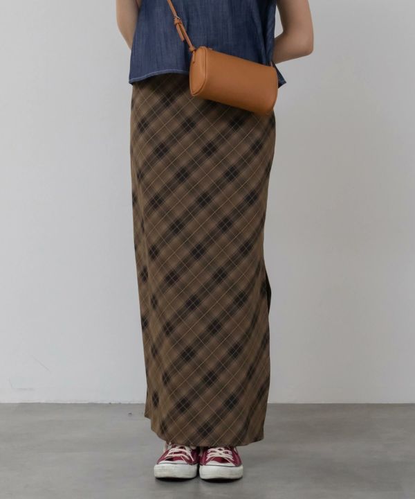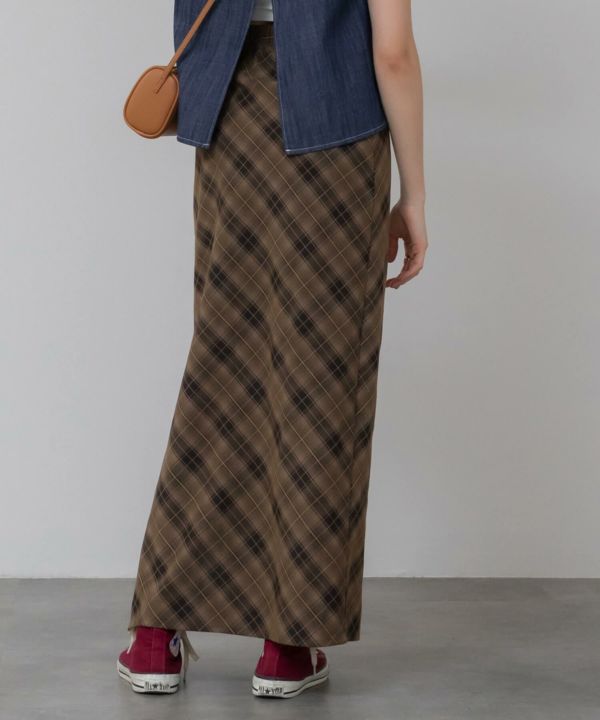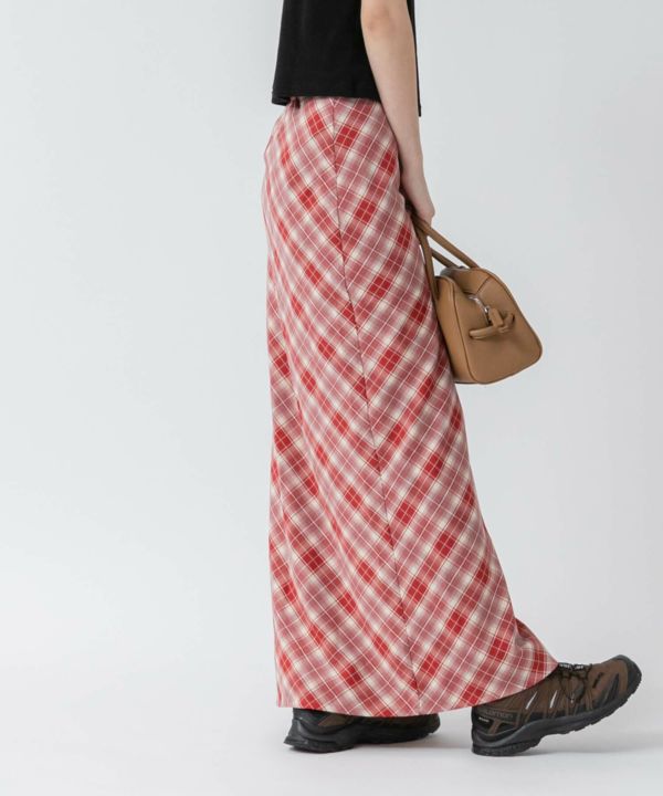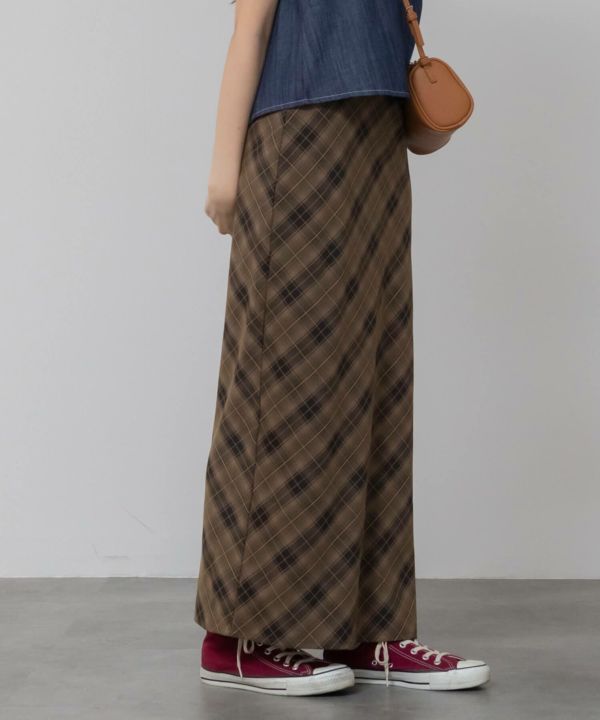 すとんと落ちるナローシルエットに、斜め柄のバイアスチェックが特徴の一枚。