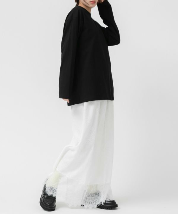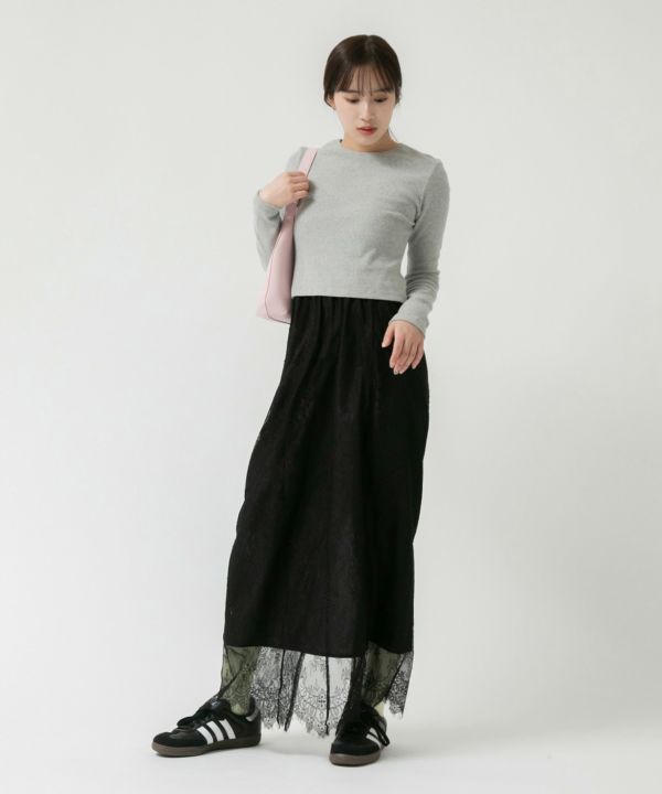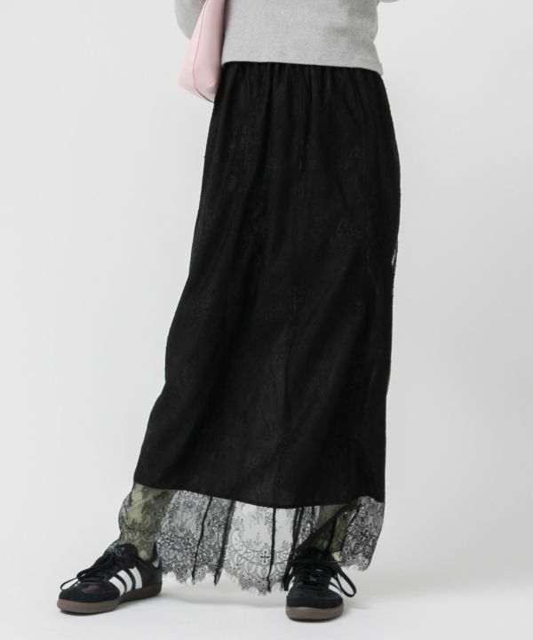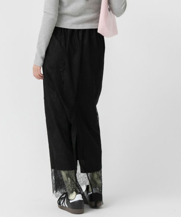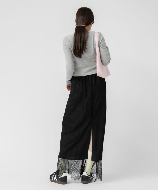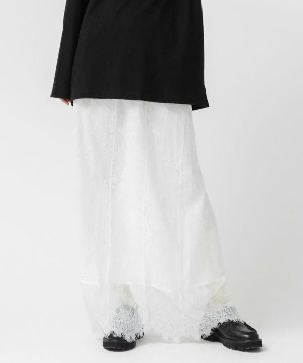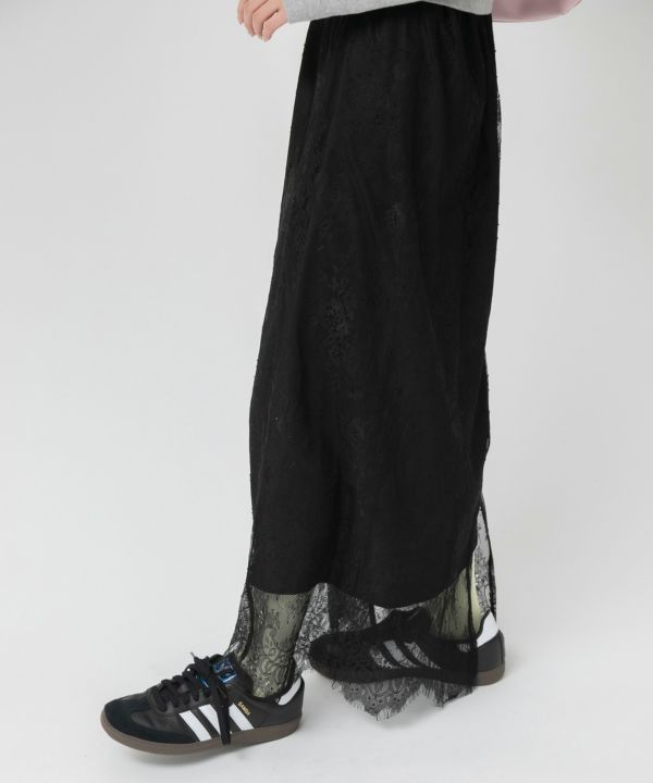 大人っぽく着こなせるタイトラインの総レーススカート。