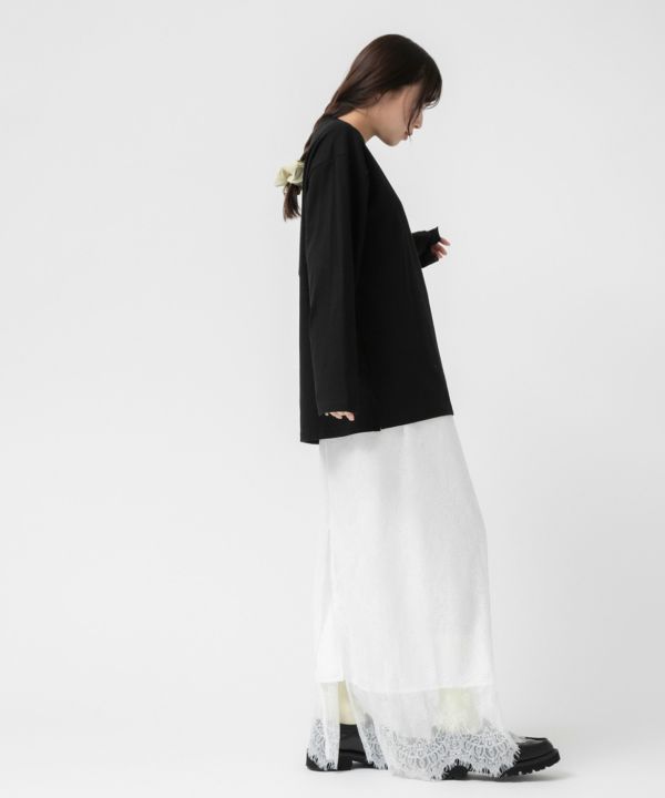 裾はレースの雰囲気を活かした透け感のあるスカラップで軽やかな足元に。