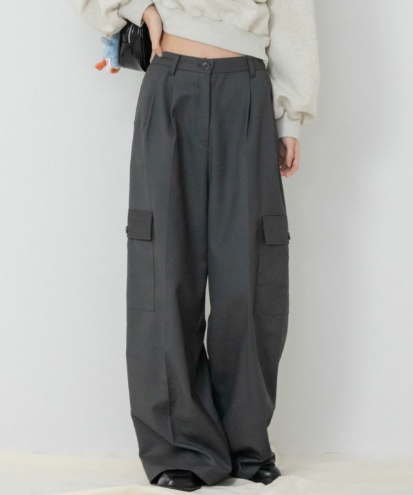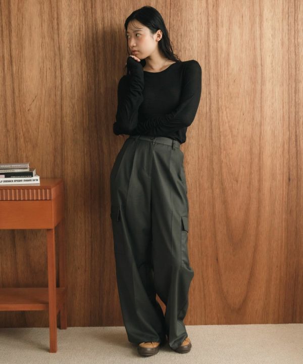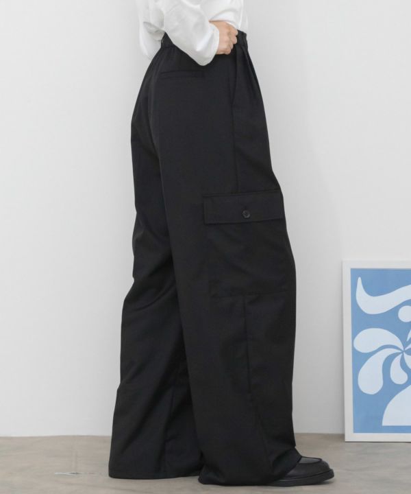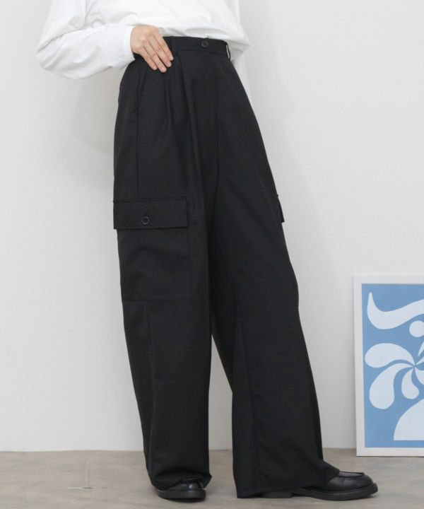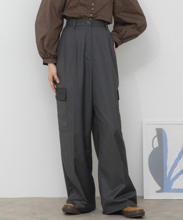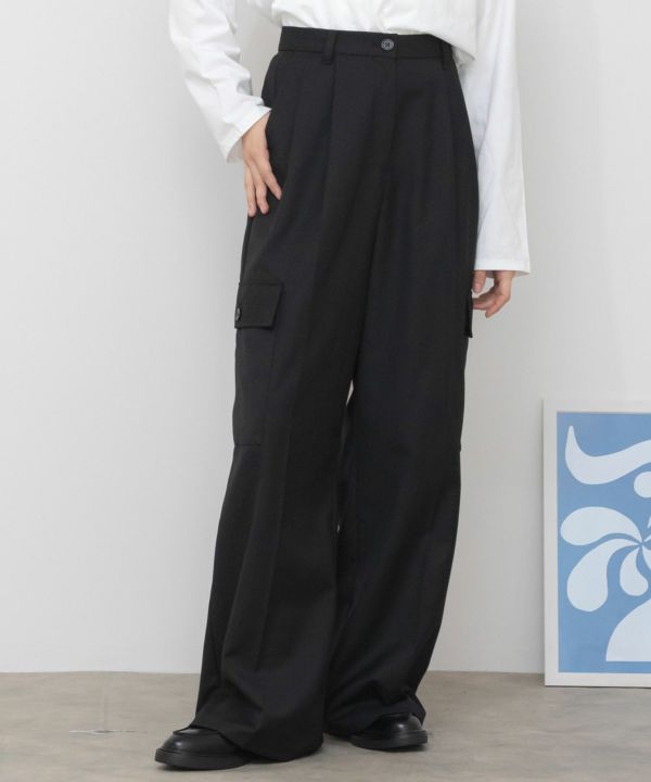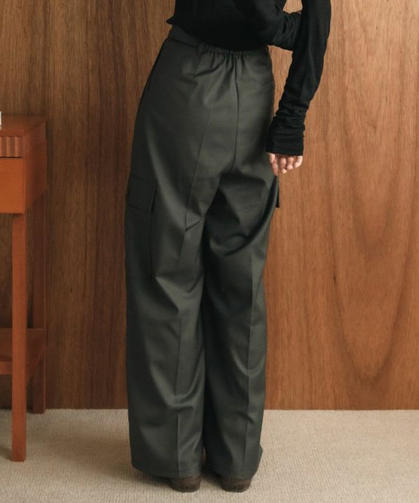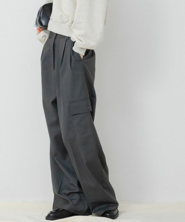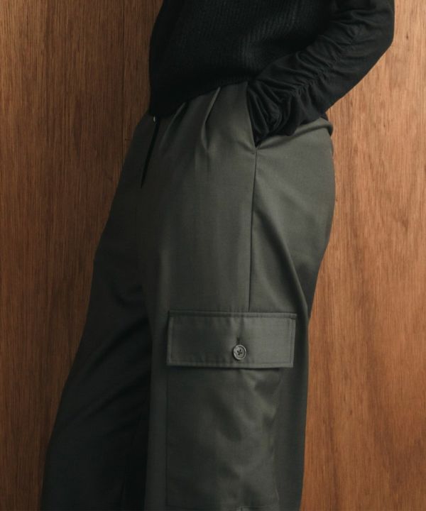 ウールライクなツイル生地とセンタープレスで仕立てたきれいめカーゴパンツ。