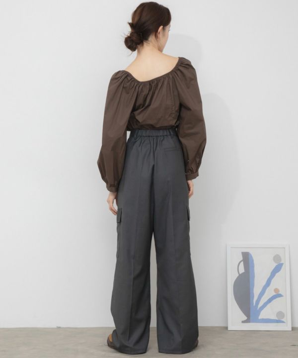 スッキリとしたウエスト周りにすとんと落ちたストレートなワイドシルエットでメリハリのあるルックスを演出。