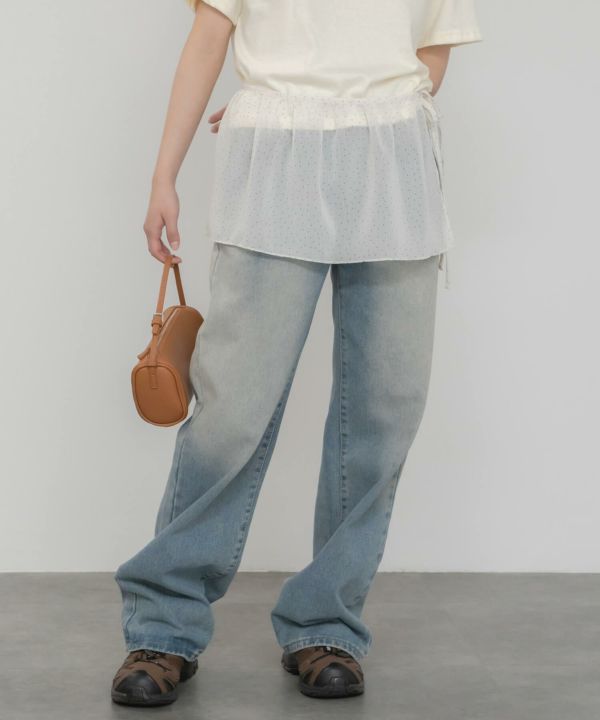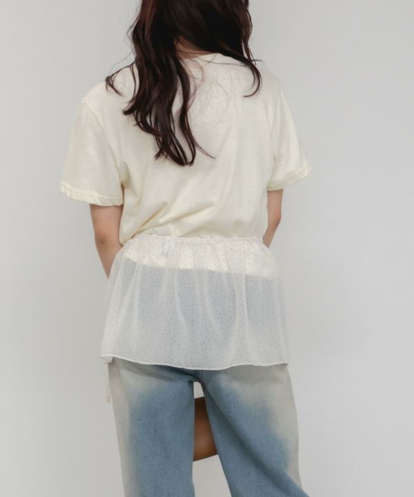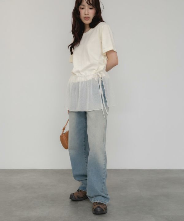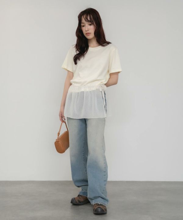 透け感のある生地が、レイヤードスタイルを軽やかに仕上げてくれます。
