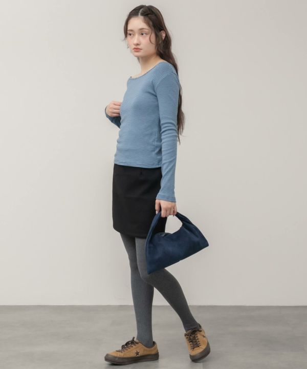 腰まわりはすっきりと見せつつ、程よいハリ感でラインを拾いにくい設計です。