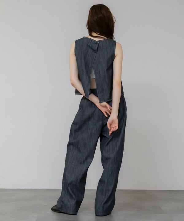 合わせてブラックのサンダルを合わせるだけで、シンプルなのに洗練された雰囲気に。