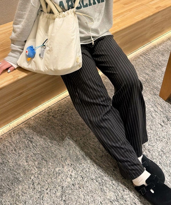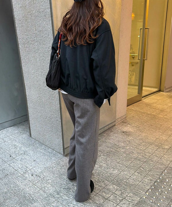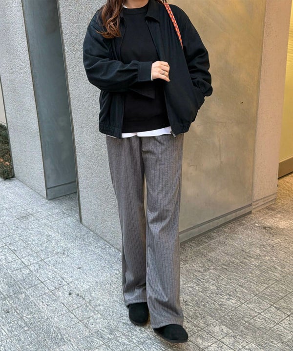 縦に入ったストライプが、ルーズなサイズ感でもすっきりとした印象に見せてくれます。