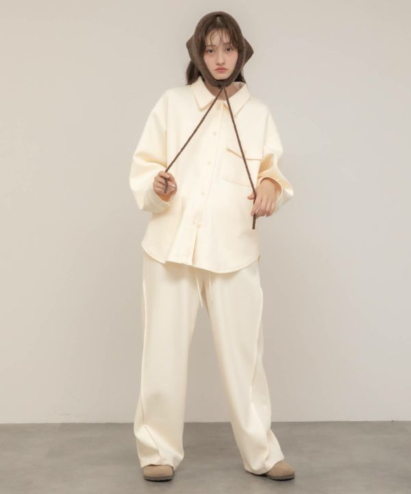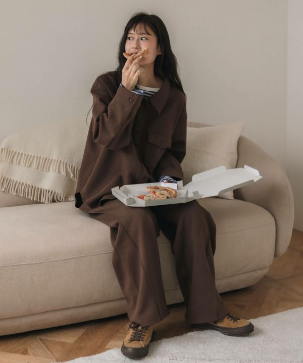 程よく張り感のある生地は美しいシルエットを生み出し足長・着やせ効果◎しっかりとした厚みと、もちっとした触感で着心地も抜群です。