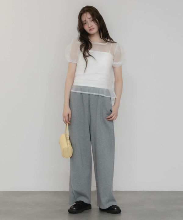 ボリューム感たっぷりのルーズな分量は1枚で着映えするパンツです。