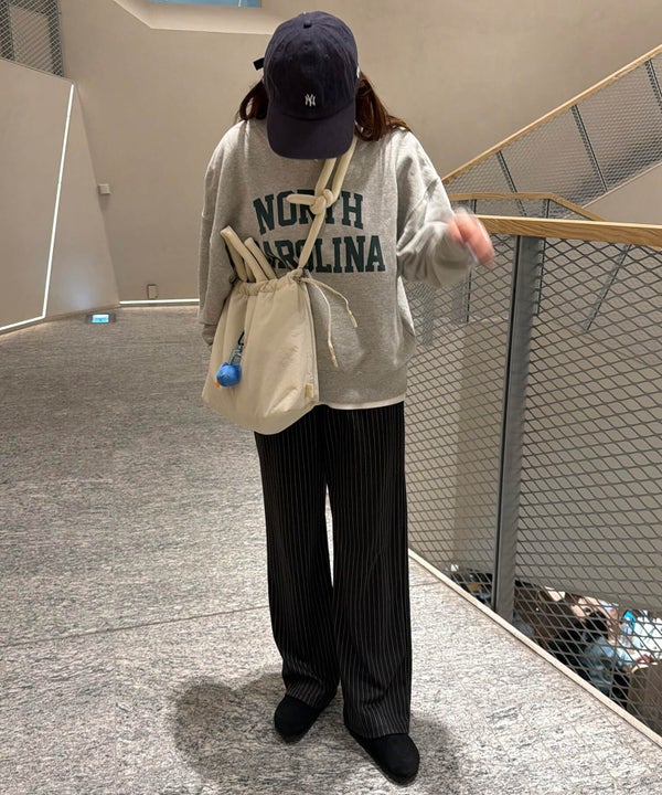 ロンTやシャツをタックインして、バランスを整えるのもおすすめです。