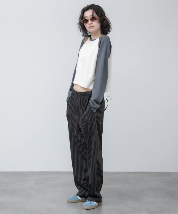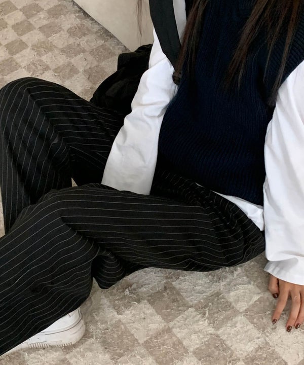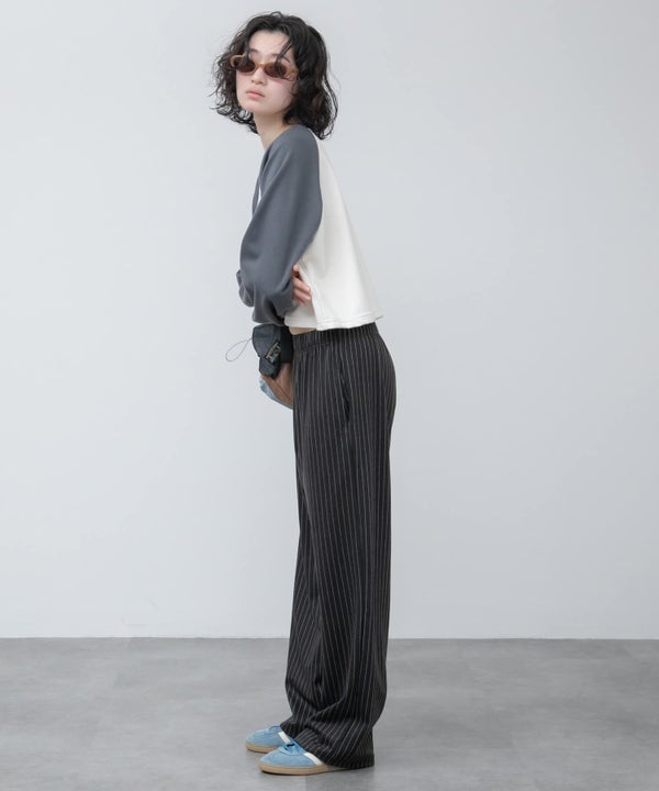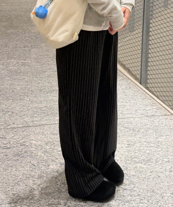 縦に入ったストライプが、ルーズなサイズ感でもすっきりとした印象に見せてくれます。