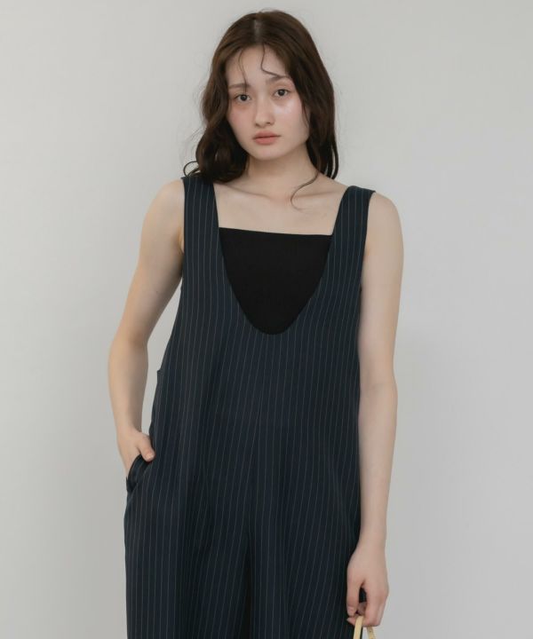 ネイビーは白線のストライプ柄で軽やかな印象に。