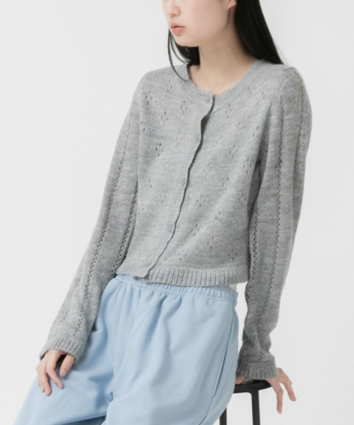 他の画像を見る 花柄のような透かし編みが大人ガーリーなカーディガン Flower Cutting Knitted Cardigan SALE ¥ 6,930 ¥ 5,989 税込 カートに入れる お気に入りに登録する