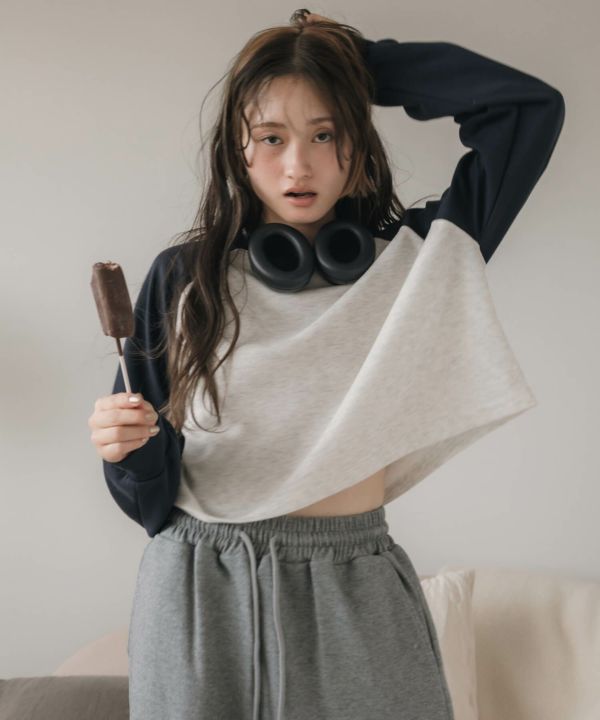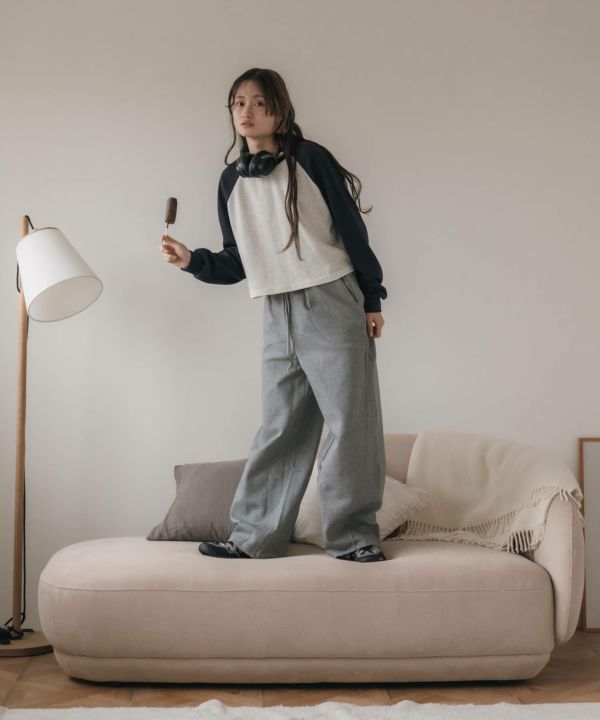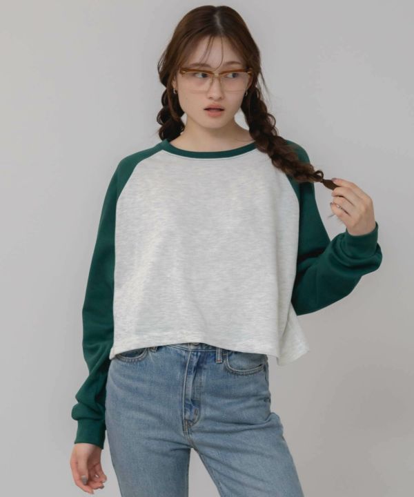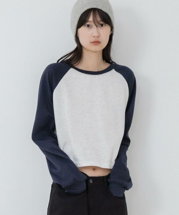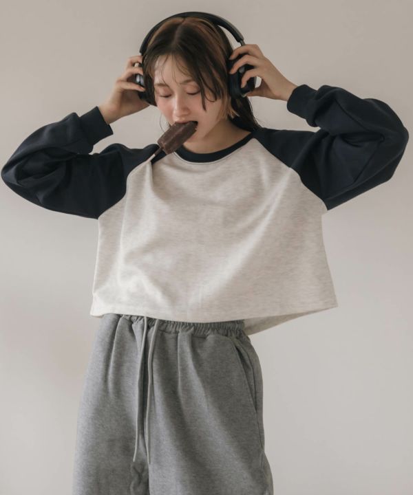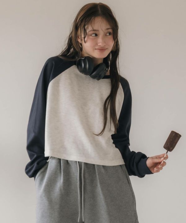 ゆるっとしたラフさが可愛いショート丈でスタイルアップも叶えるラグランロンT Cropped Raglan Sleeve Long T-Shirt