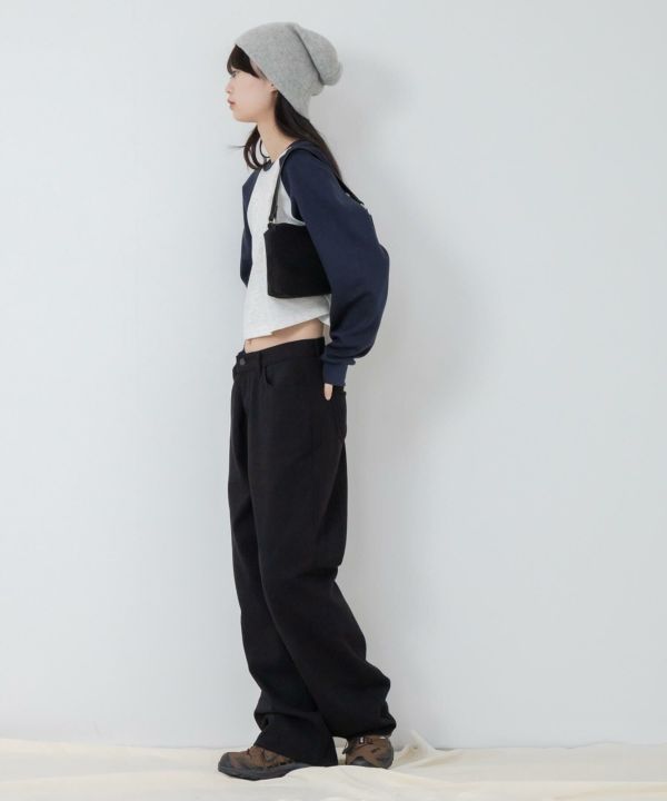 ショート丈なのでトレンドのワイドボトムやIラインのスカートとも相性◎デニムをはじめハーフパンツなどカジュアルなスタイルがおススメです。