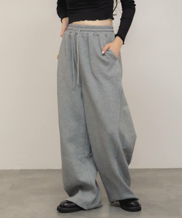 立体的なカーブシルエットが旬なルックのスウェットパンツ。