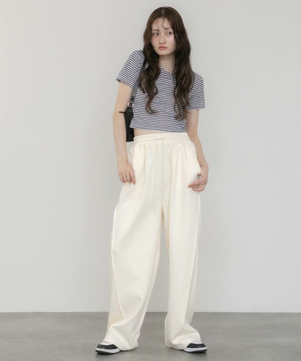 ボリューム感たっぷりのルーズな分量は1枚で着映えするパンツです。