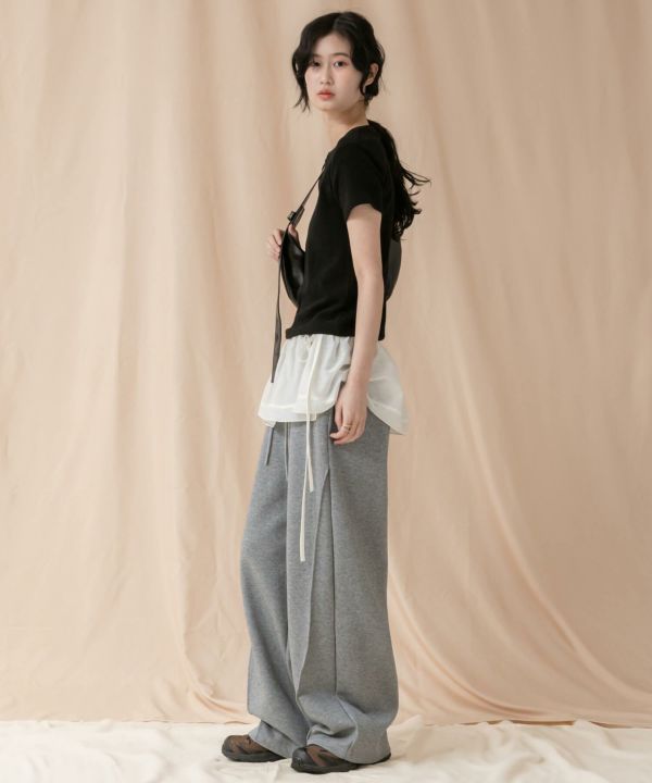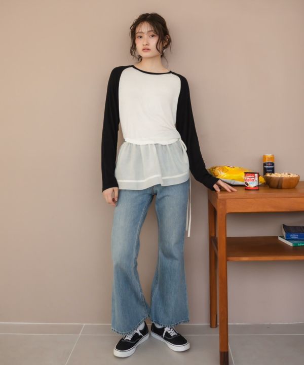 透け感のある生地が、レイヤードスタイルを軽やかに仕上げてくれます。