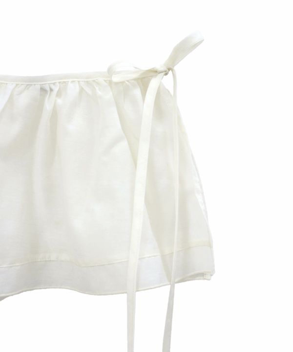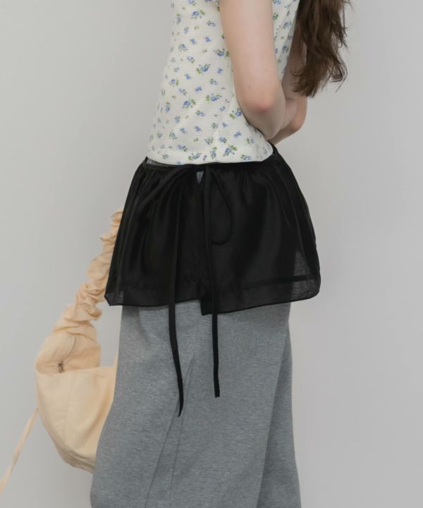 ウエストに巻いて簡単にレイヤードが楽しめるフリルレースエプロンミニスカート。