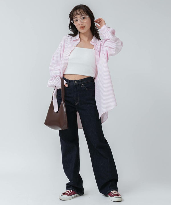韓国ファッション好きには、ロゴ入りTシャツにスラックスやバギーデニム、足元に厚底スニーカーを合わせて、抜け感のあるカジュアルスタイルに仕上げて。