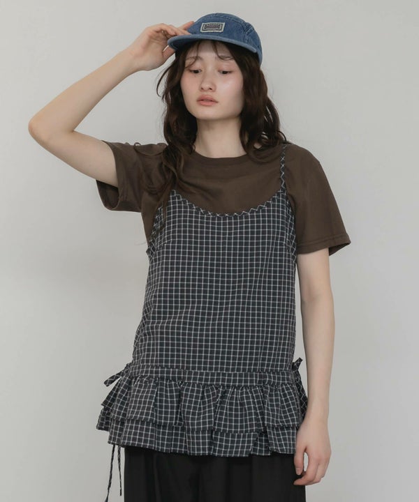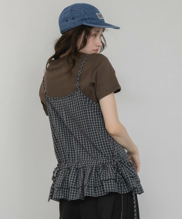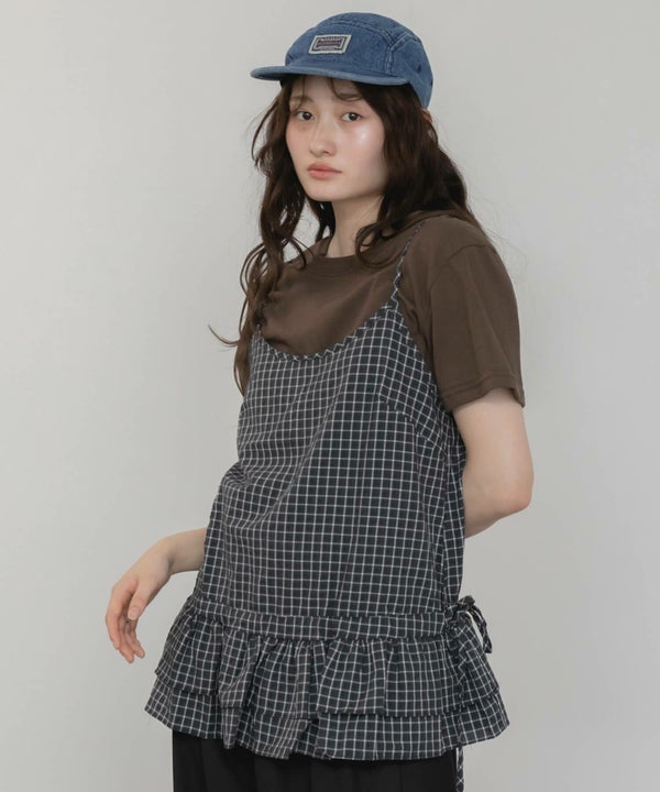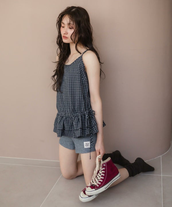 裾のペプラムデザインを掛け合わせたキャミソール。