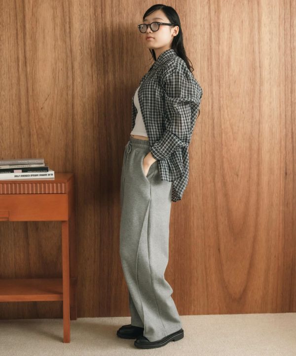 立体的なカーブシルエットが旬なルックのスウェットパンツ。