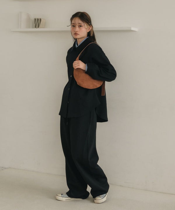 ブラックはグレーのワイドスラックスやモノトーンのスウェットコーデに合わせると、