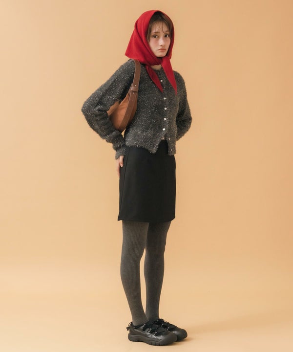ざっくりニットと合わせて季節感のあるレディライクな着こなしに。
