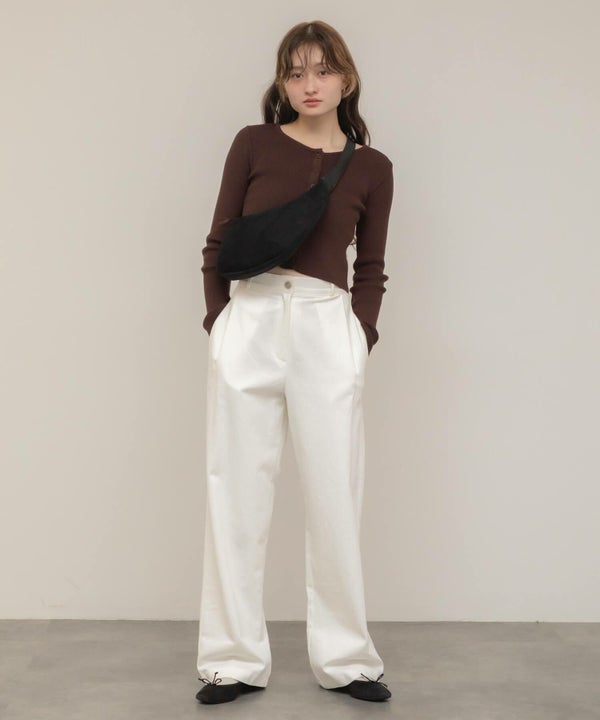 キャメルはアイボリーやベージュ系のワイドパンツ、