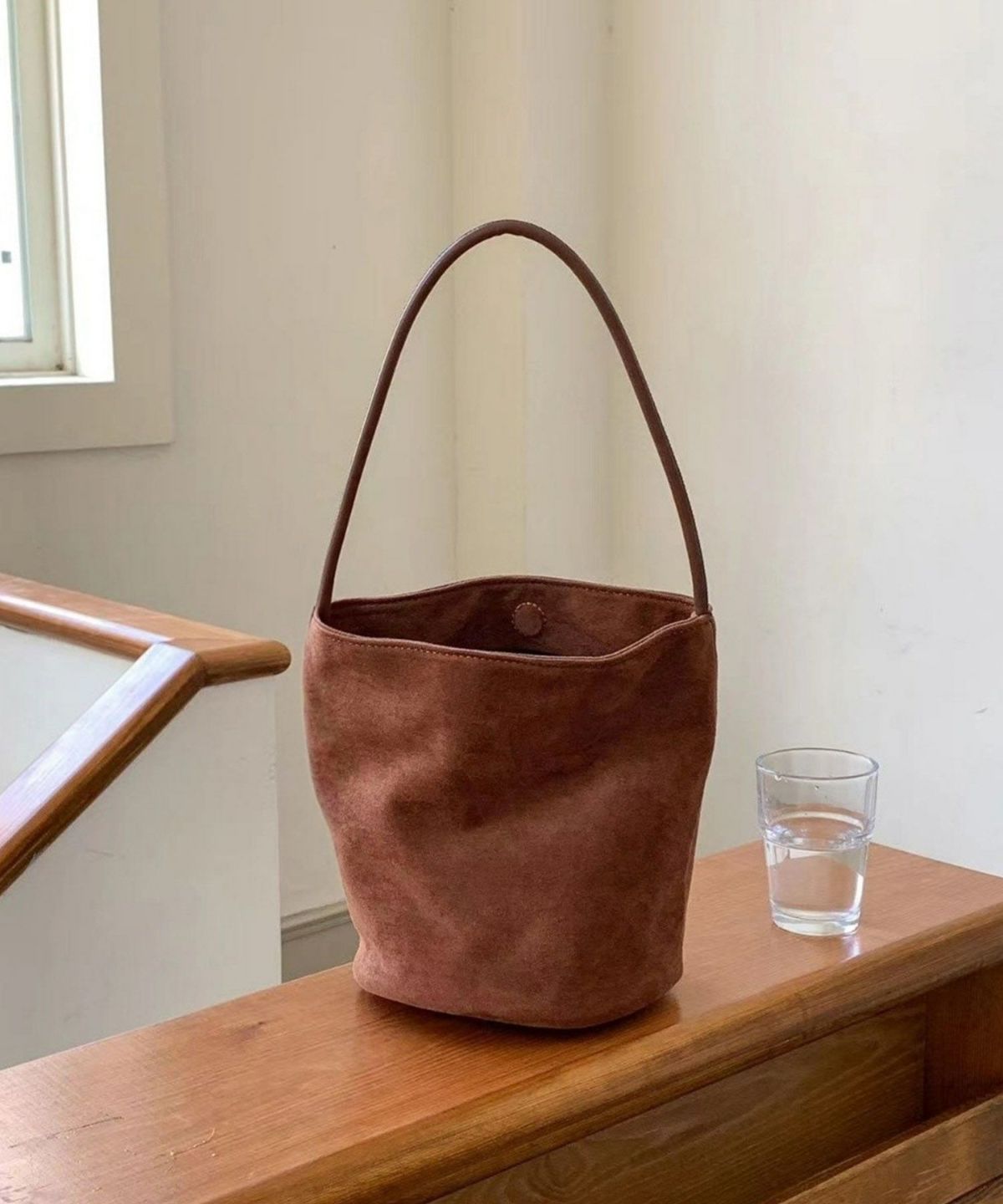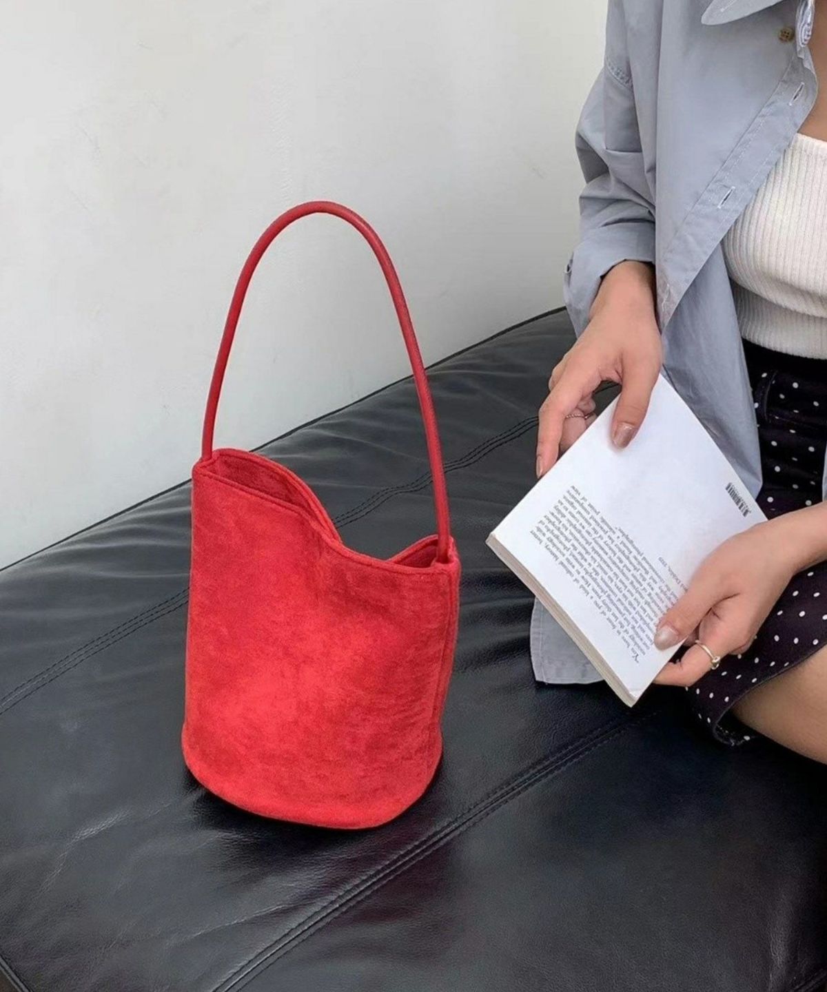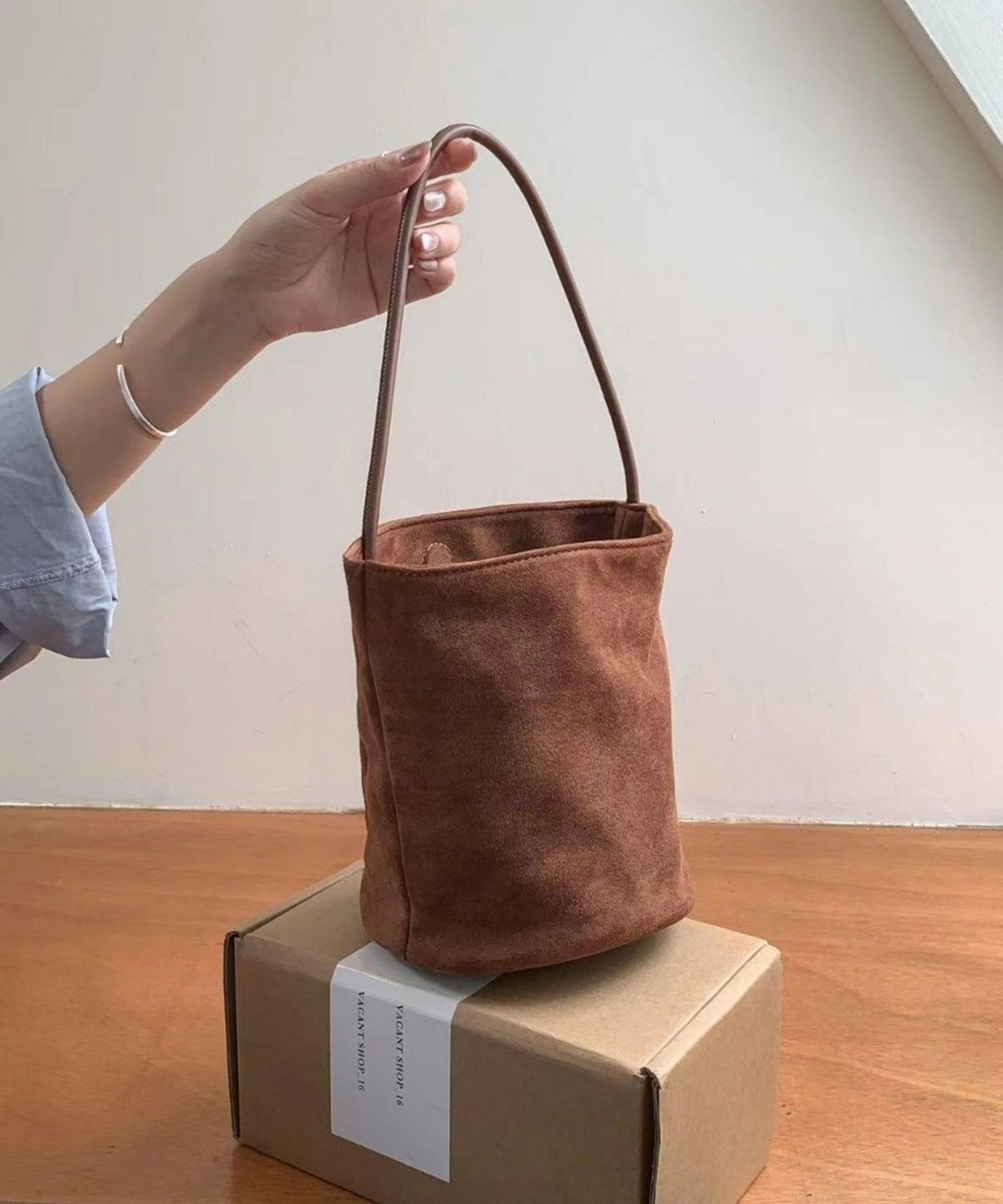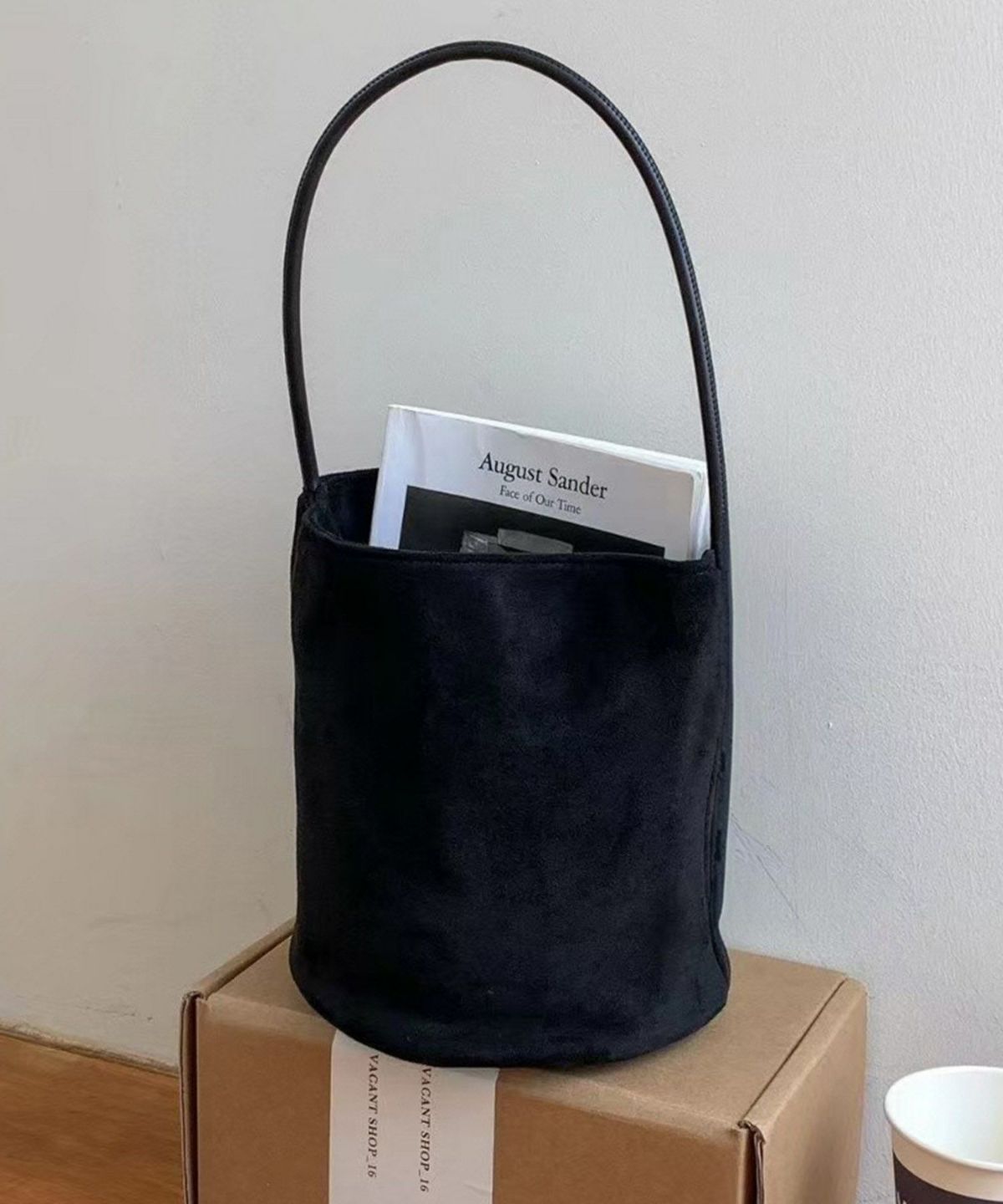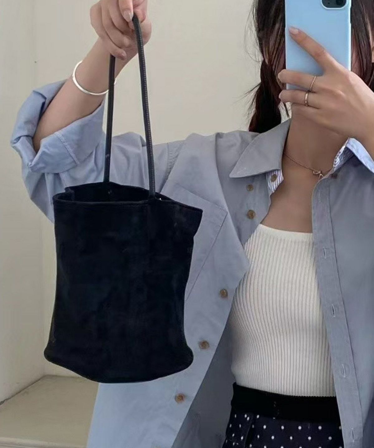 コロンとした円柱型でスタイリングのポイントになるハンドバッグ One Handle Suede Bucket Bag