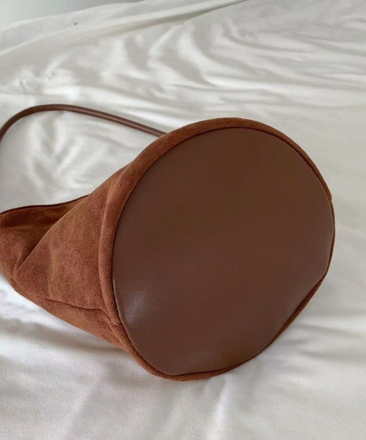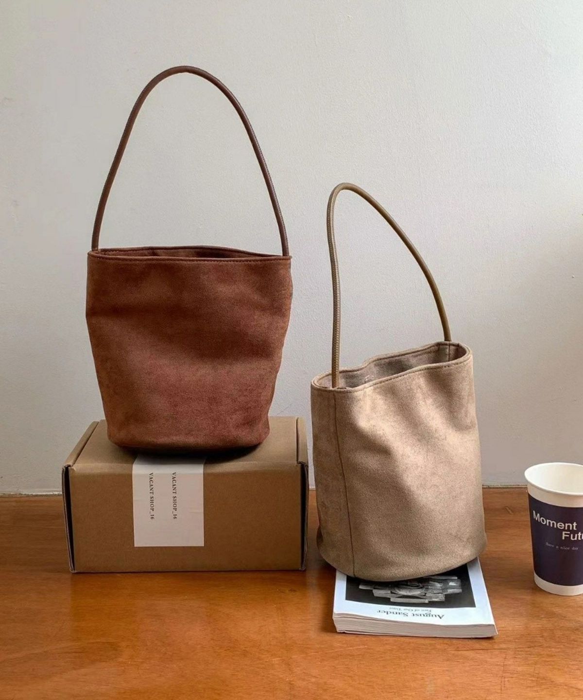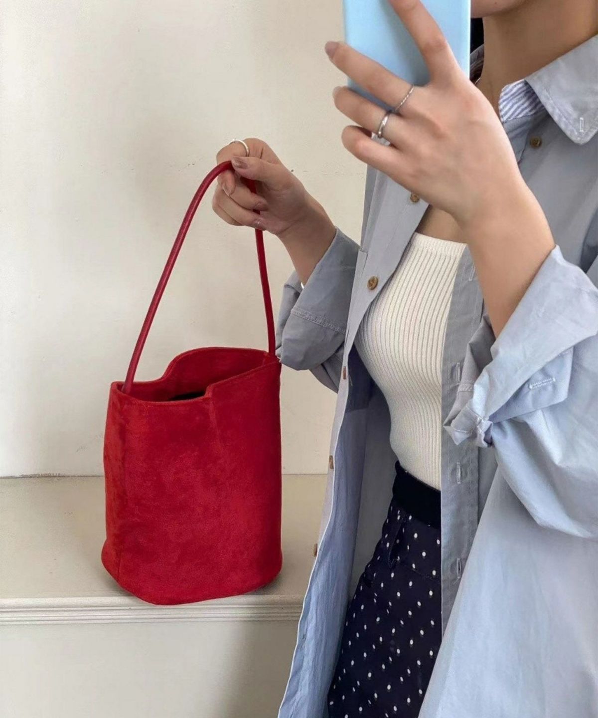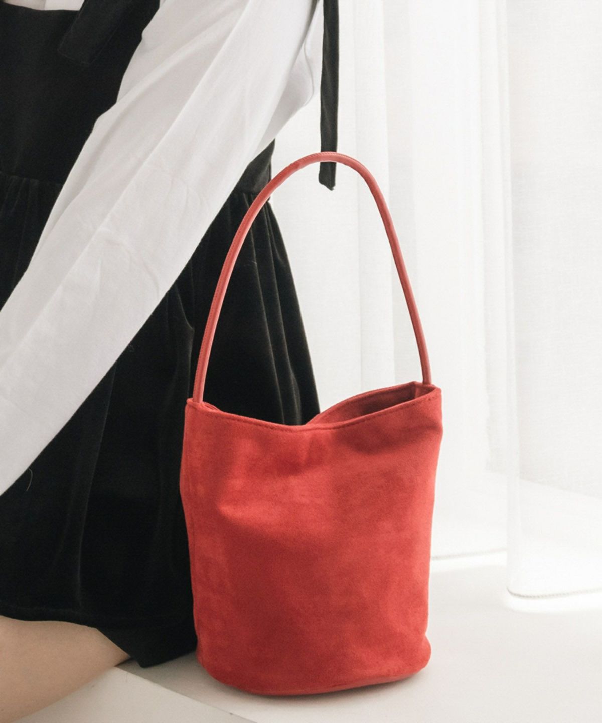 コロンとした円柱型でスタイリングのポイントになるハンドバッグ One Handle Suede Bucket Bag