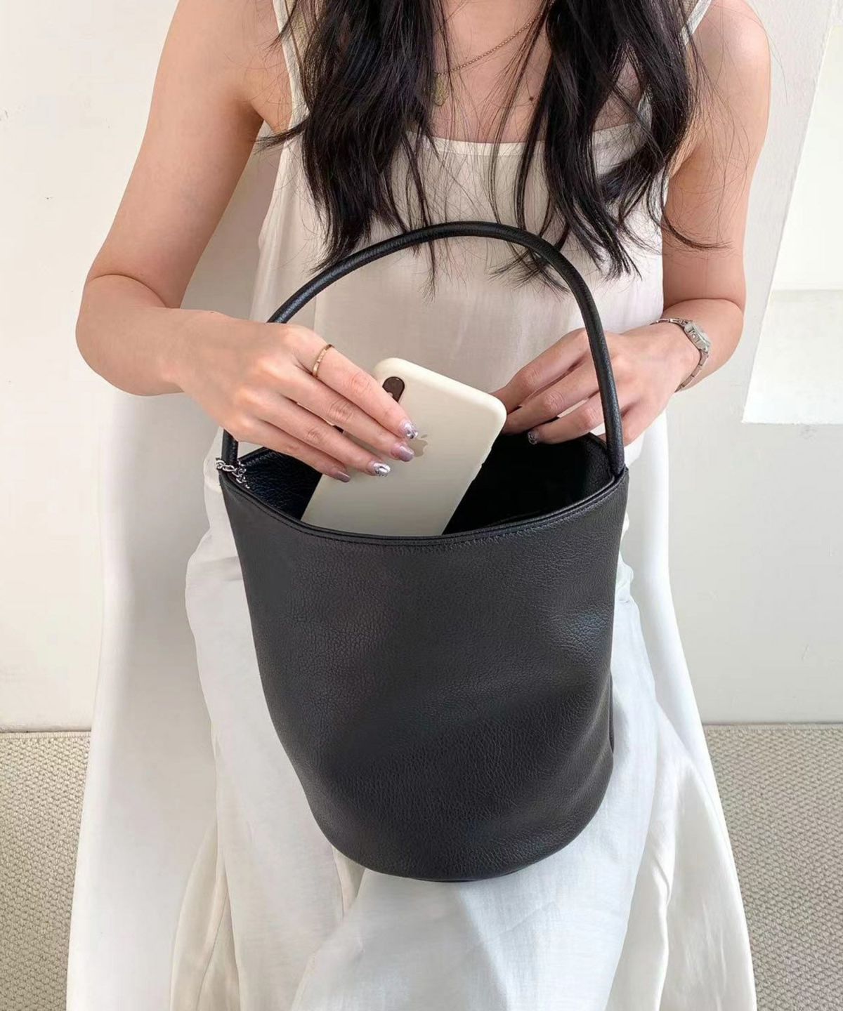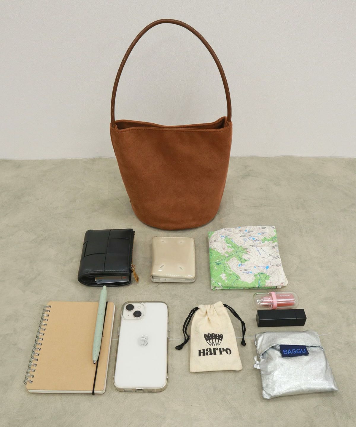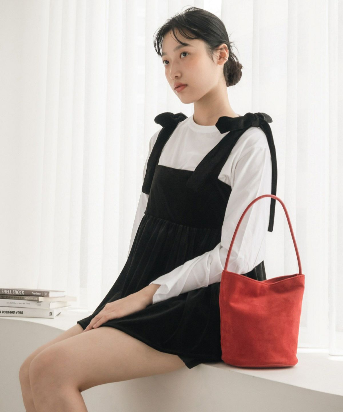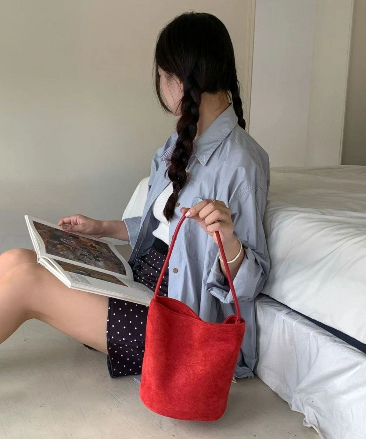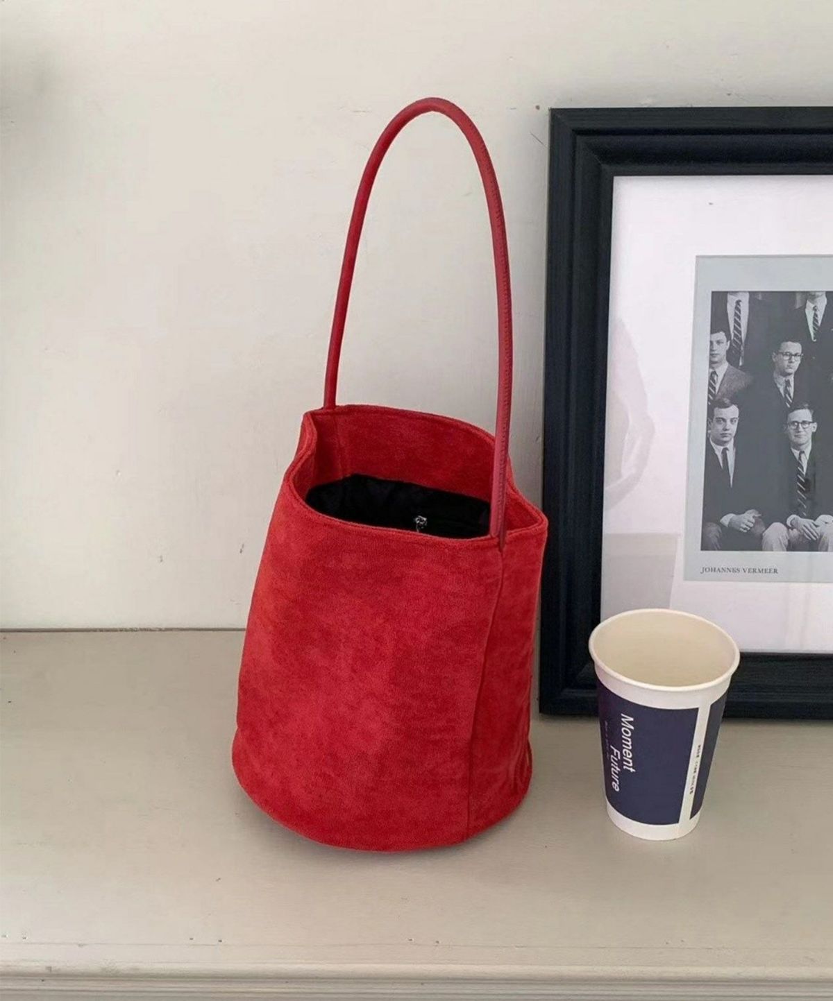 コロンとした円柱型でスタイリングのポイントになるハンドバッグ One Handle Suede Bucket Bag