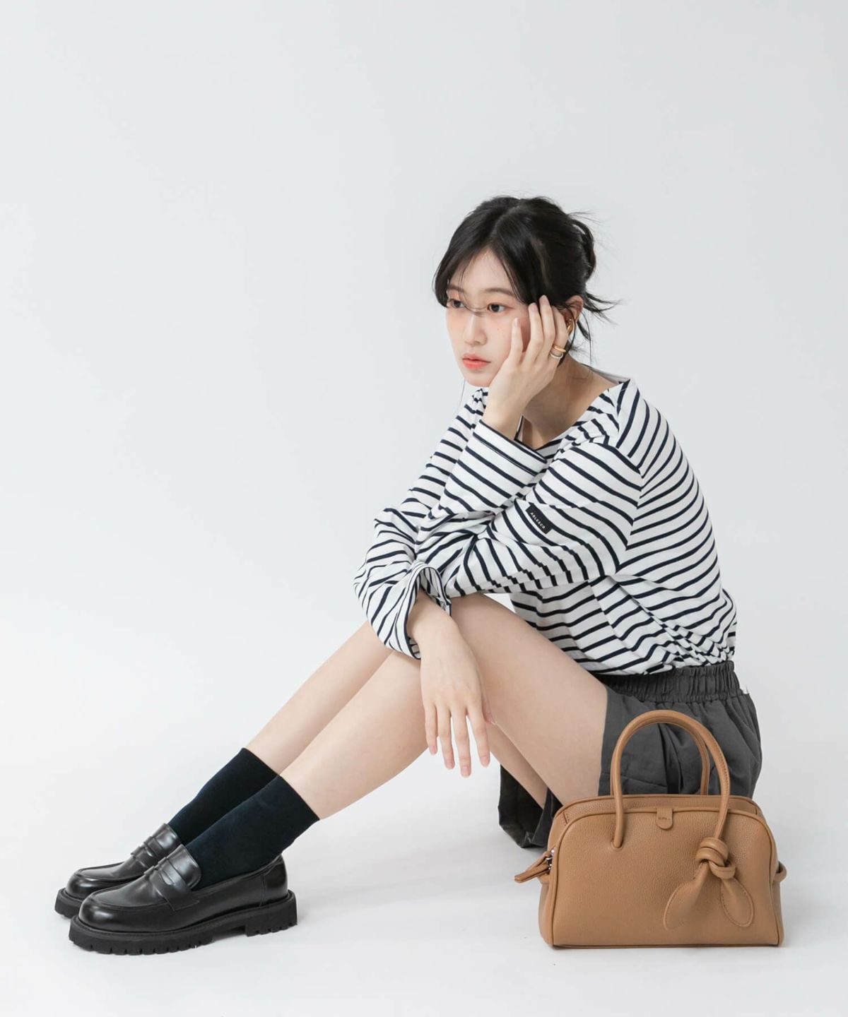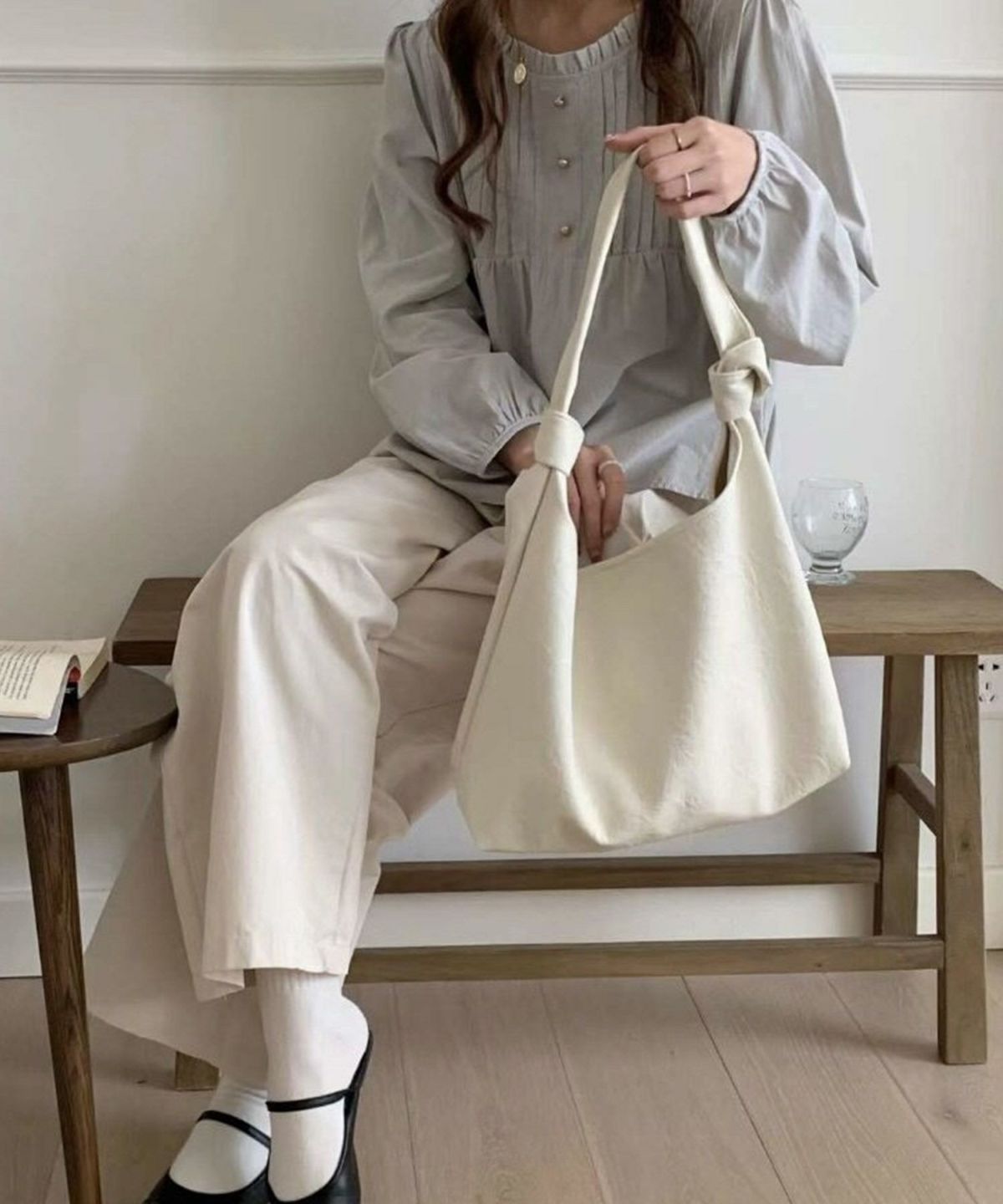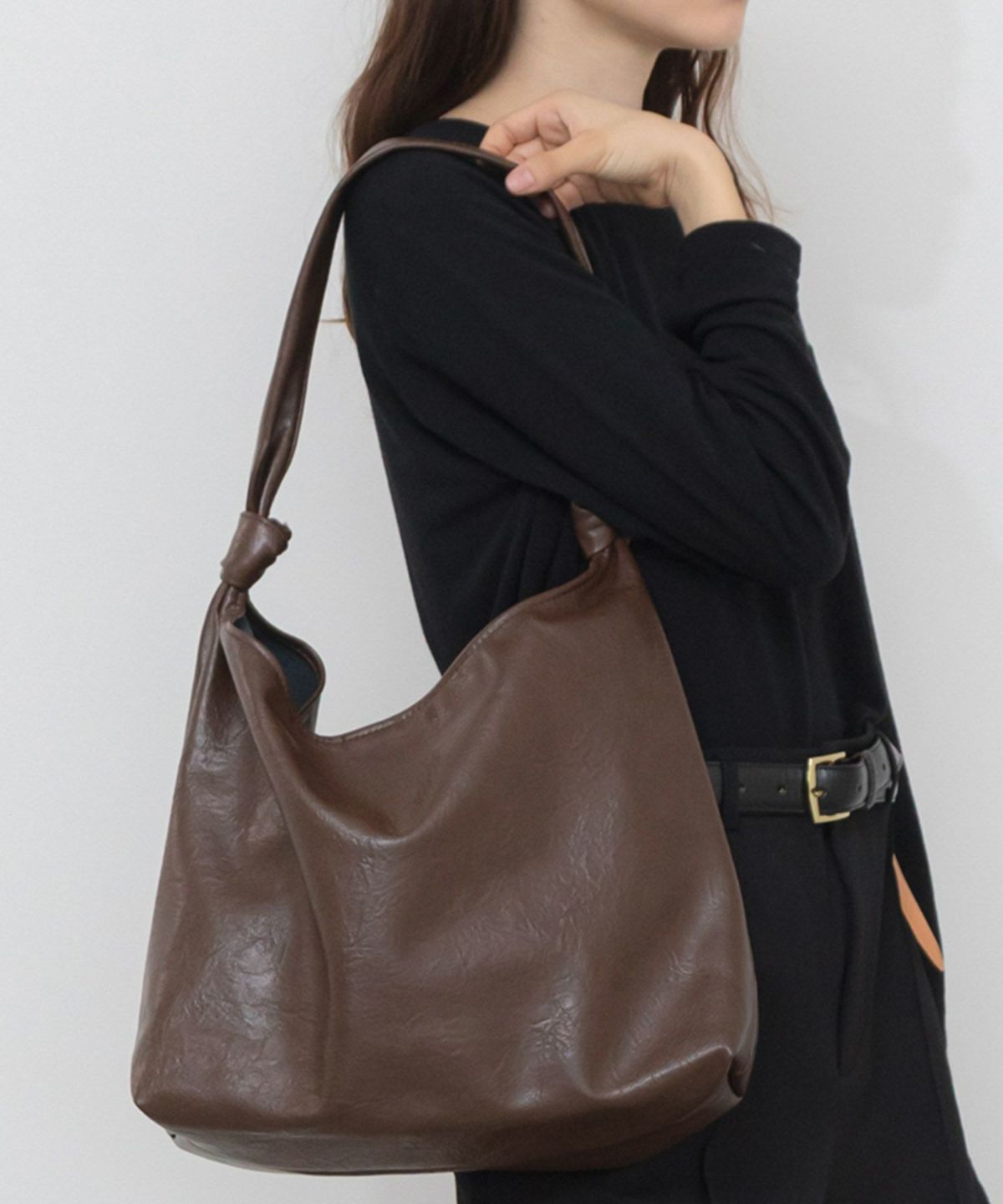 結び目デザインがスタイリングのアクセントにオンオフ使える万能ショルダーバッグ Knot Handle Shoulder Bag