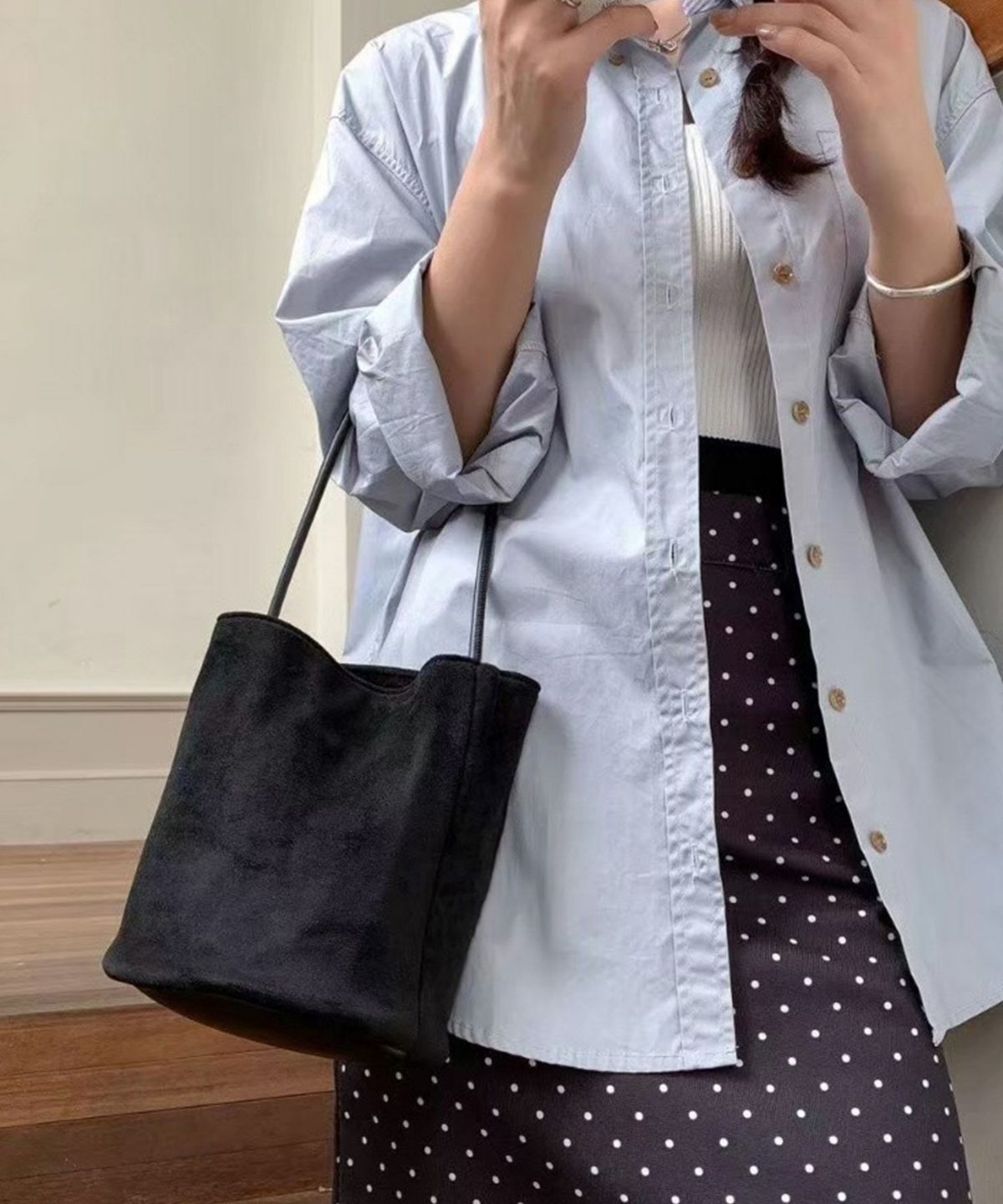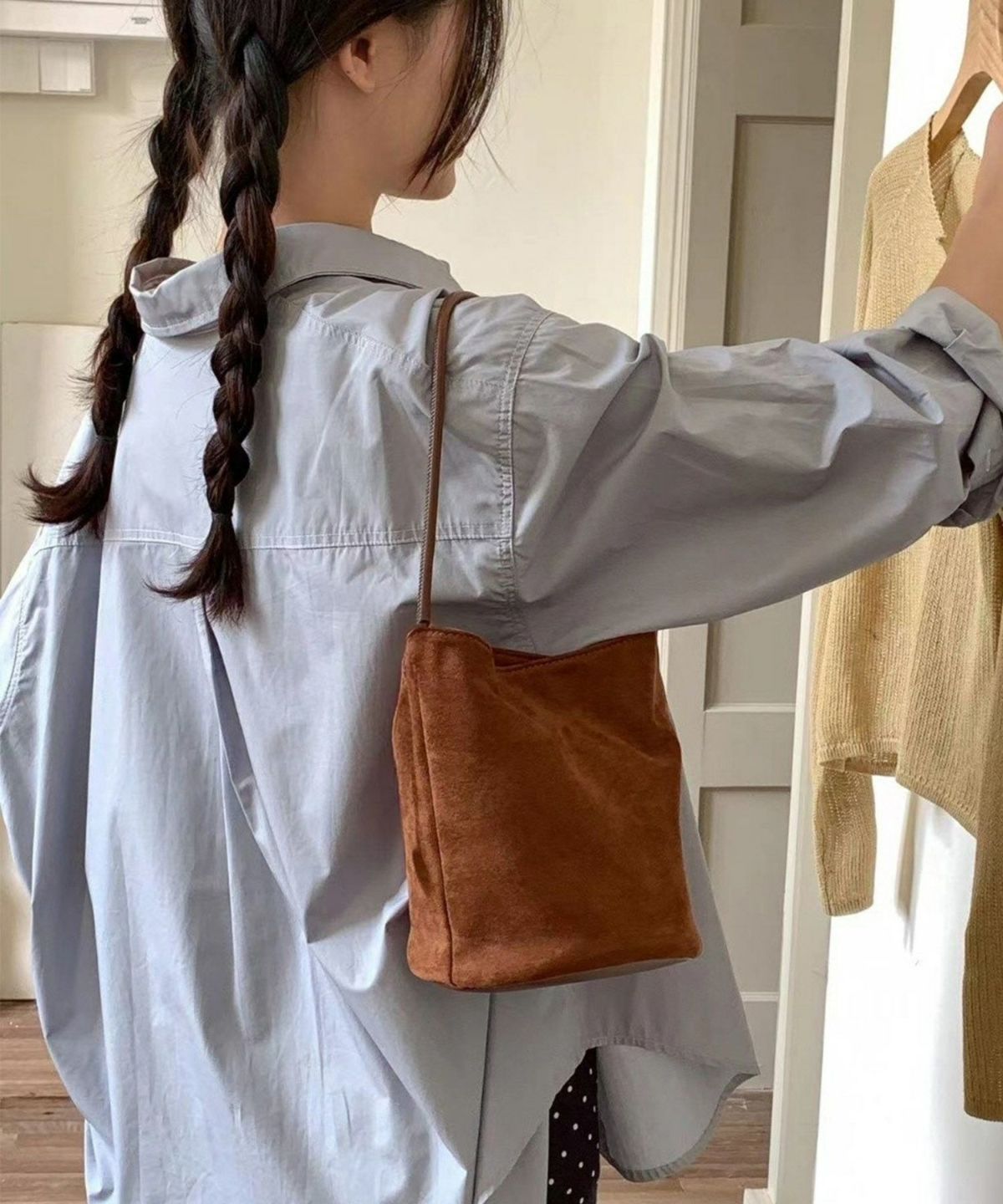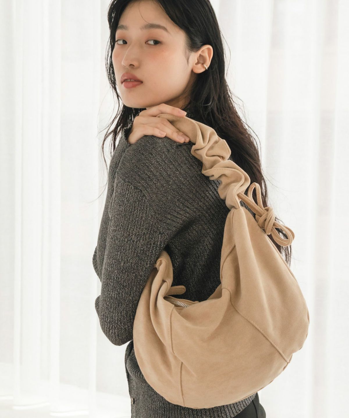 スエード素材がアクセントなワンハンドルバッグ One Handle Suede Shoulder Bag