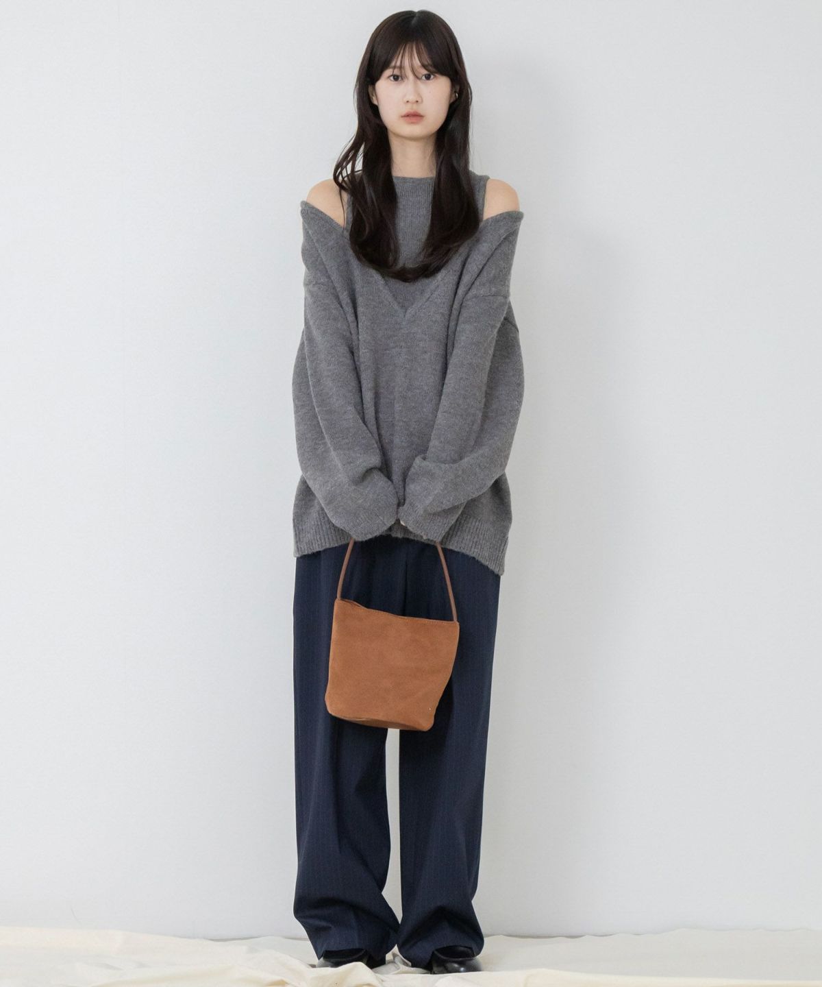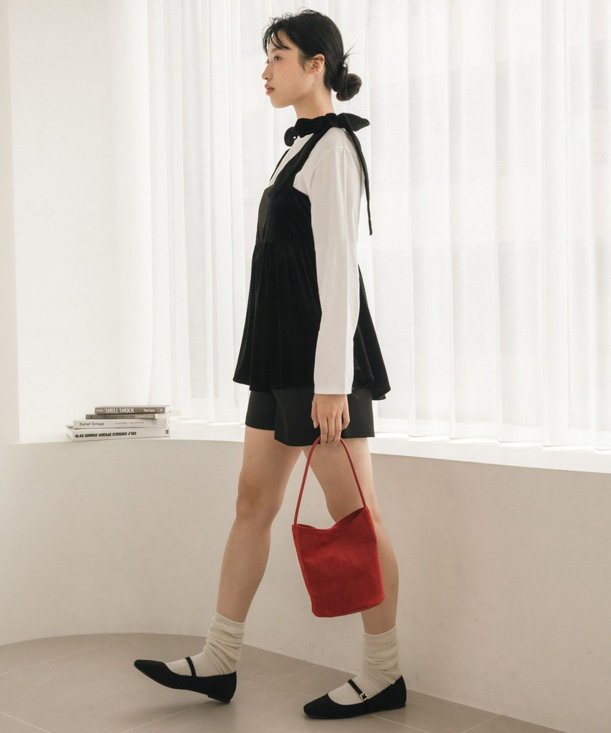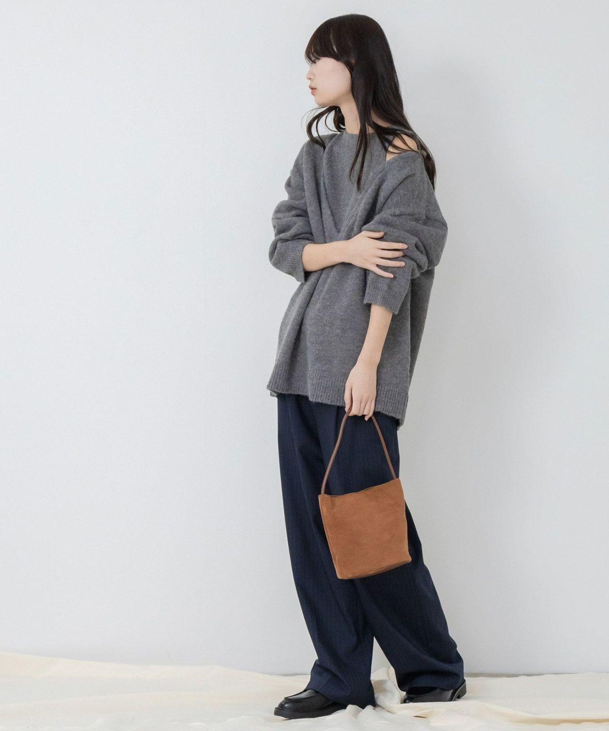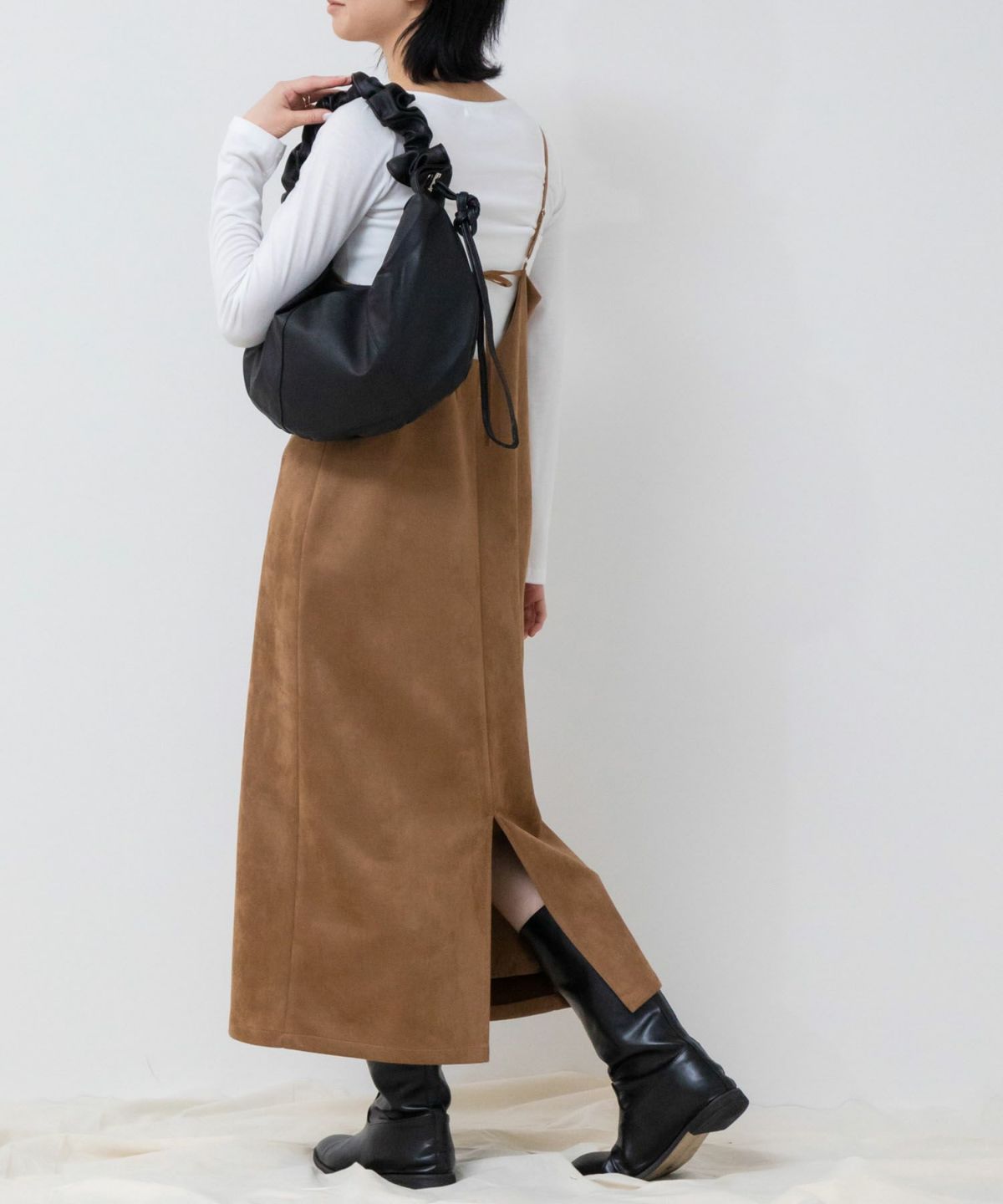 スエード素材がアクセントなワンハンドルバッグ One Handle Suede Shoulder Bag