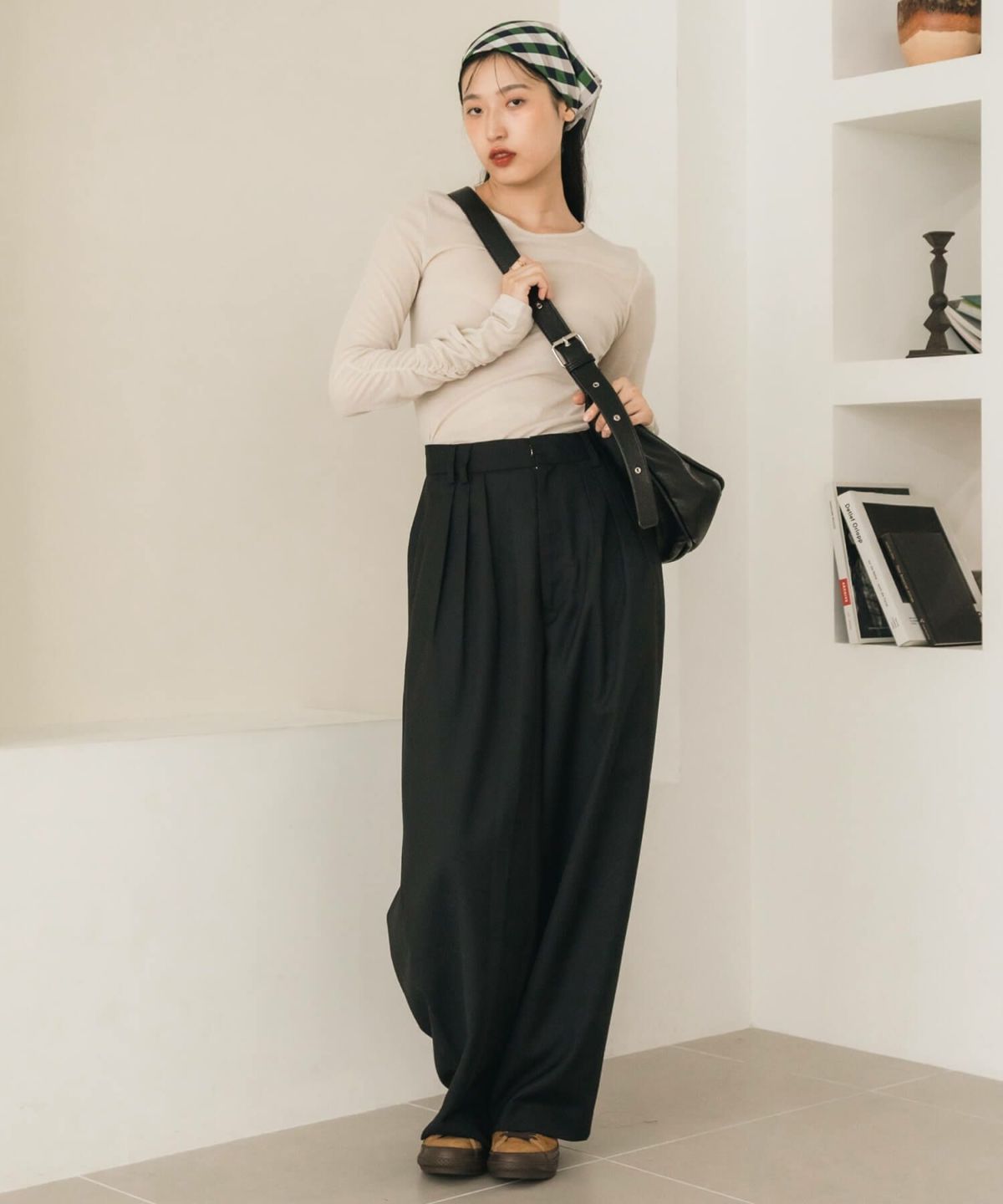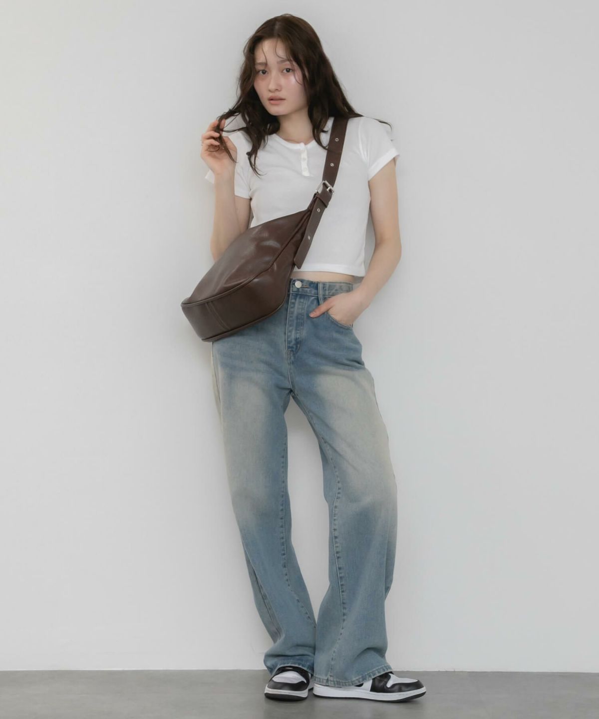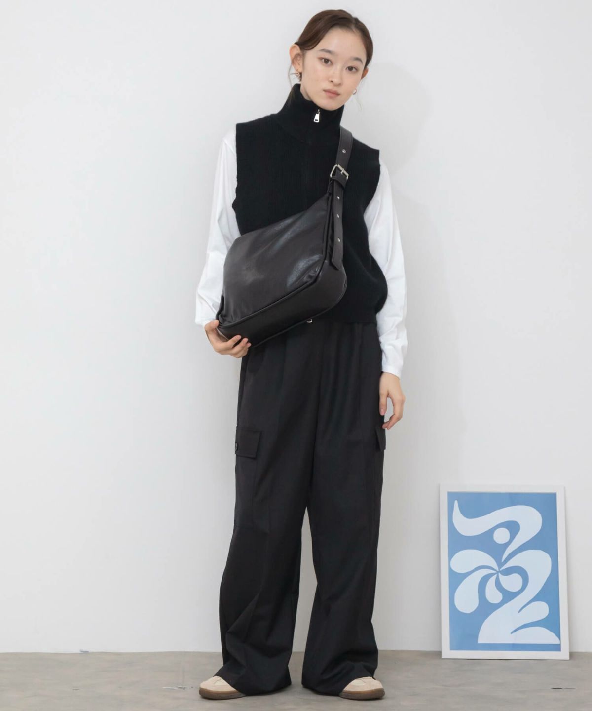 トレンドライクな横長スクエアバッグ Wide Square Shoulder Bag