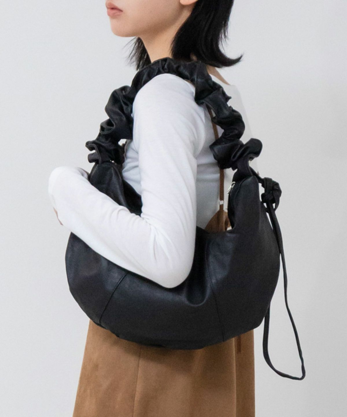 フリルギャザーのデザインが目を惹く2WAYショルダーバッグ 2Way Gather Ruffle Shoulder Bag