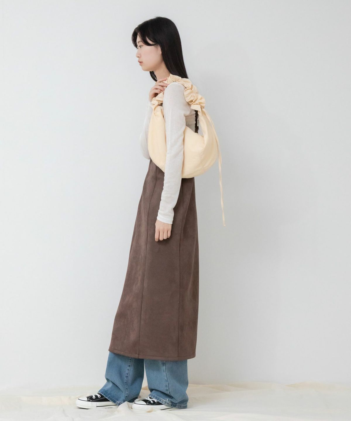 ベルトの長さで雰囲気を変えられる、使い勝手抜群の2WAYスエードバッグ。 2Way Suede Belt Bag