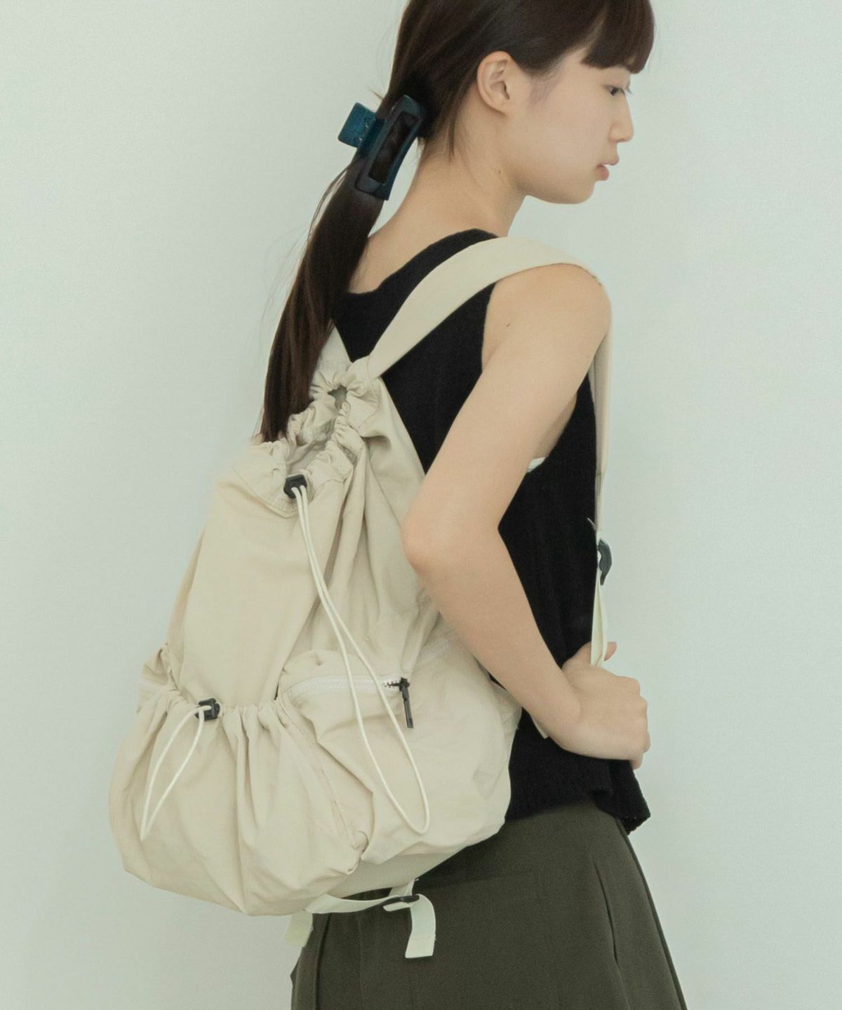 ニュートラルなデイリーバッグ Shirring Knapsack