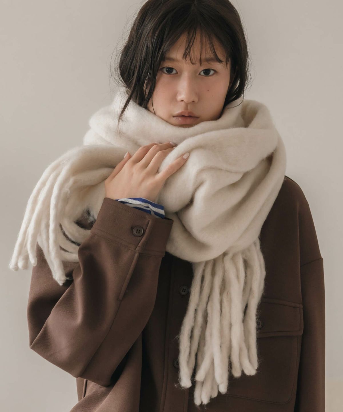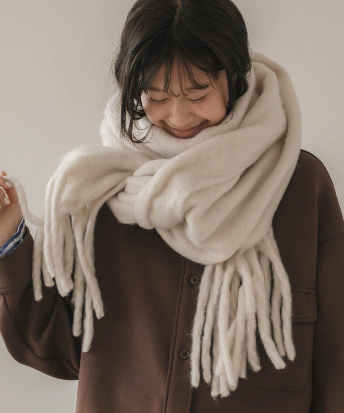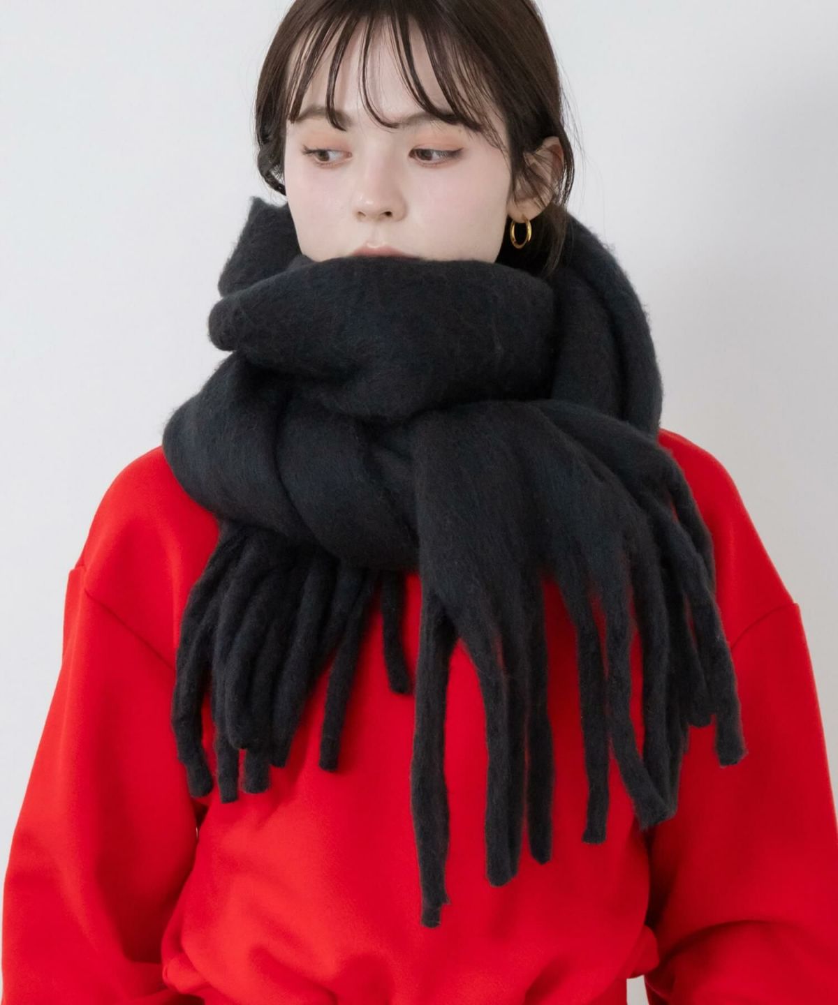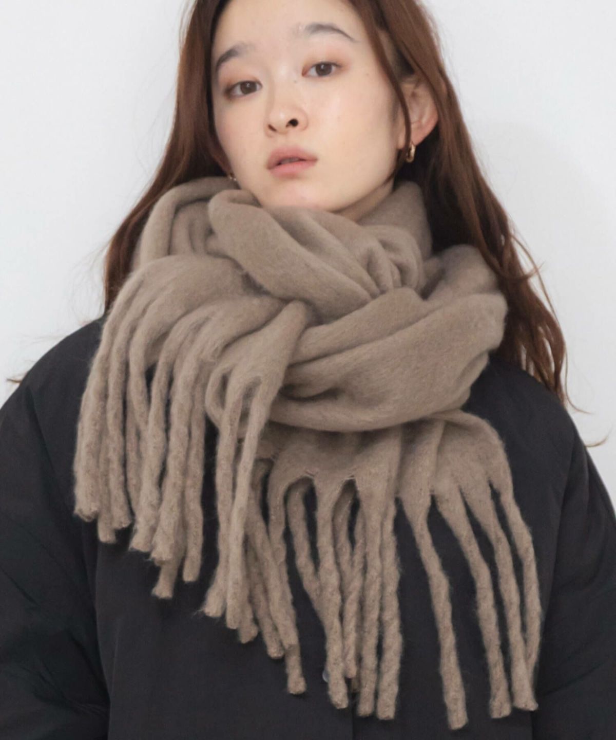 ふんわり柔らかいフェイクウールをたっぷり使用したボリューム感あふれるフリンジマフラー Volume Fringe Fake Wool Muffler