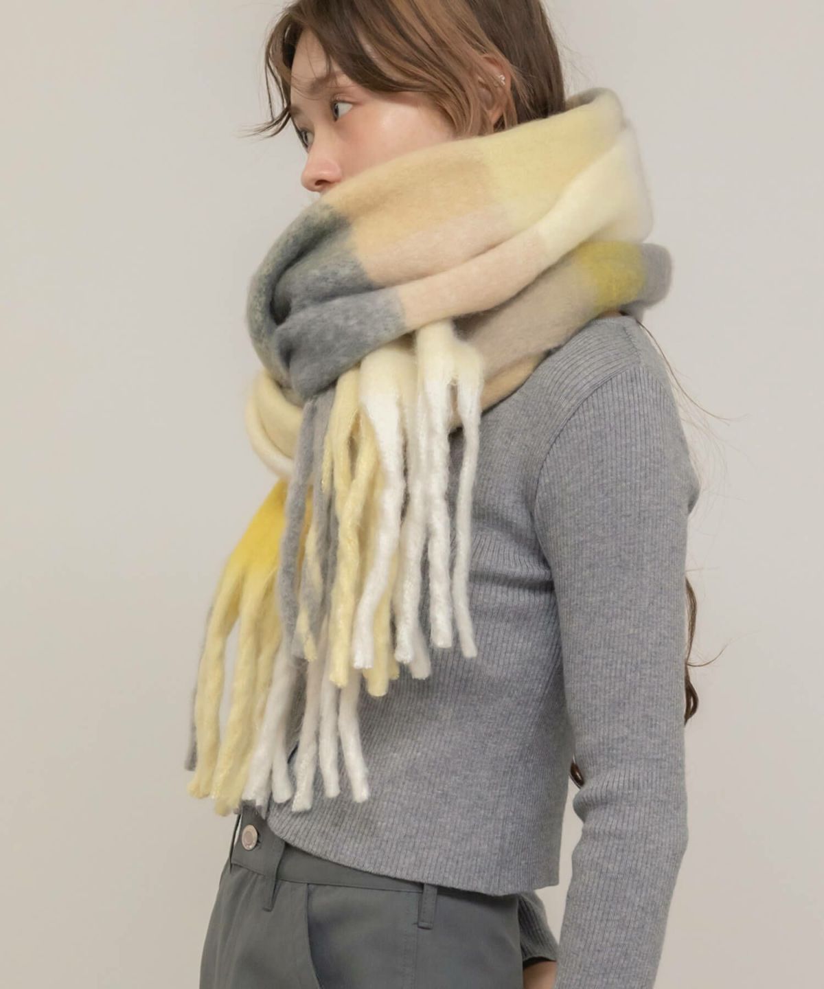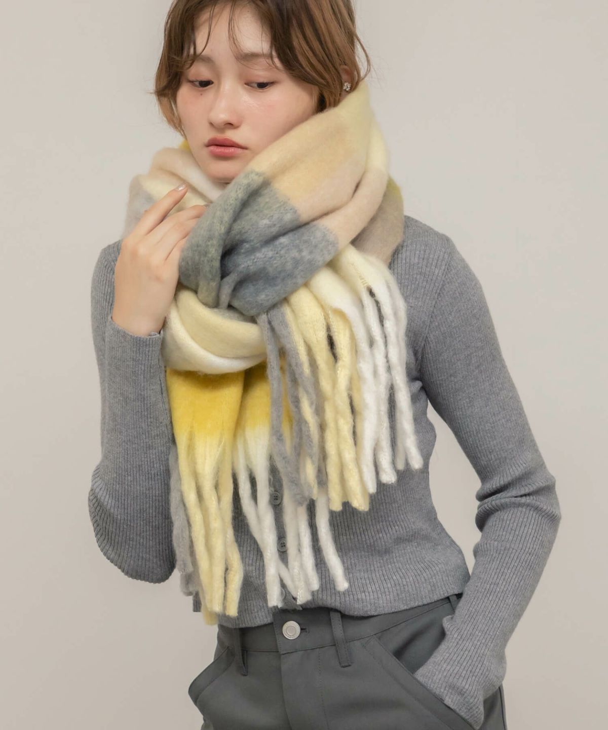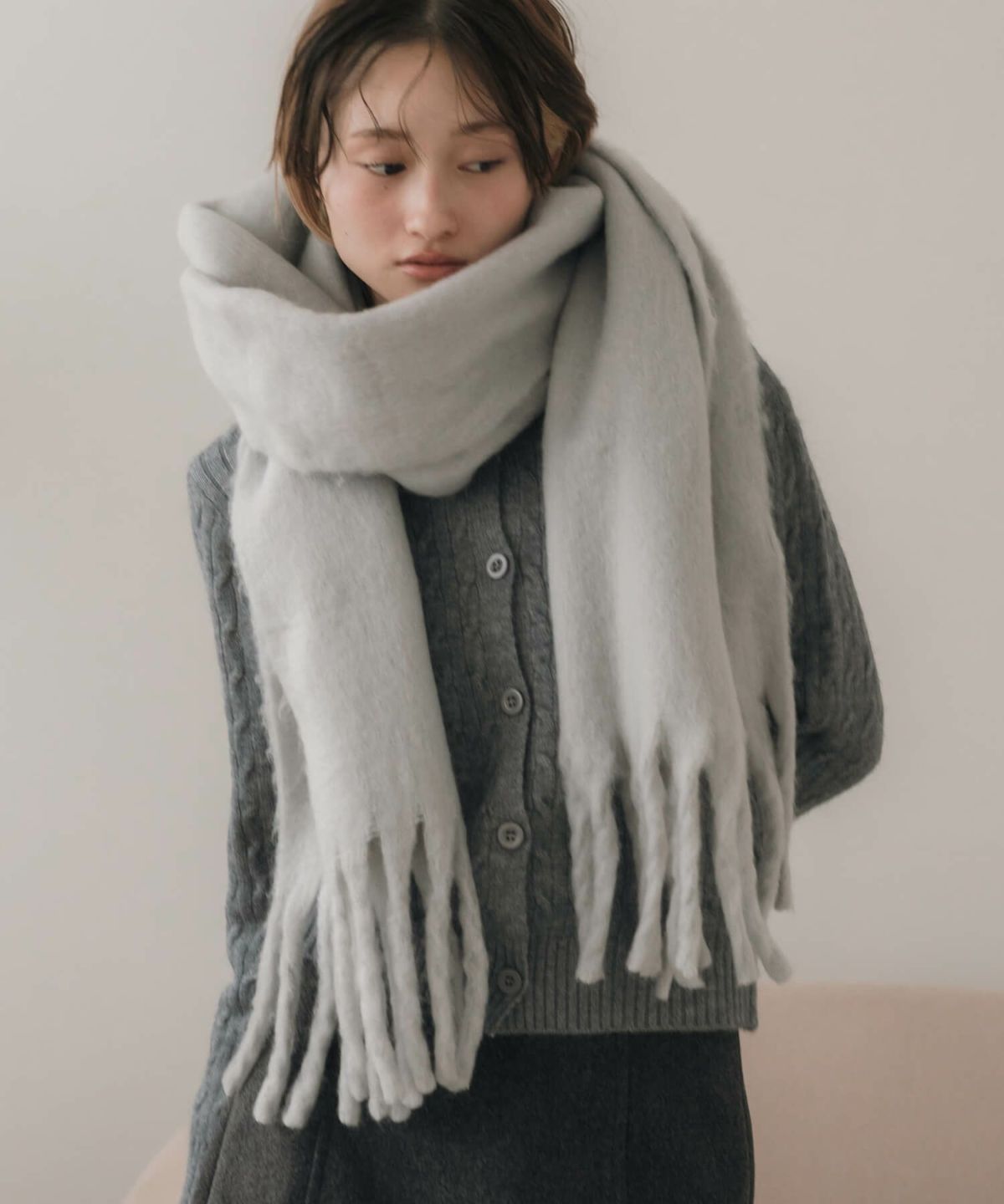 ふんわり柔らかいフェイクウールをたっぷり使用したボリューム感あふれるフリンジマフラー Volume Fringe Fake Wool Muffler