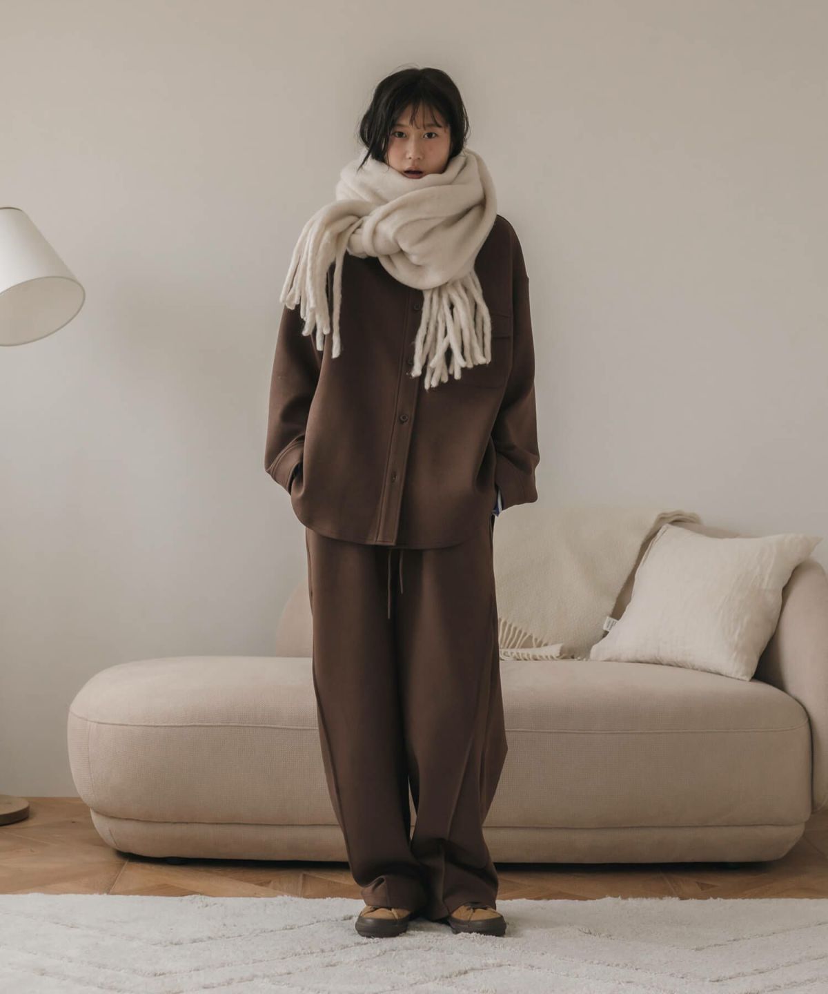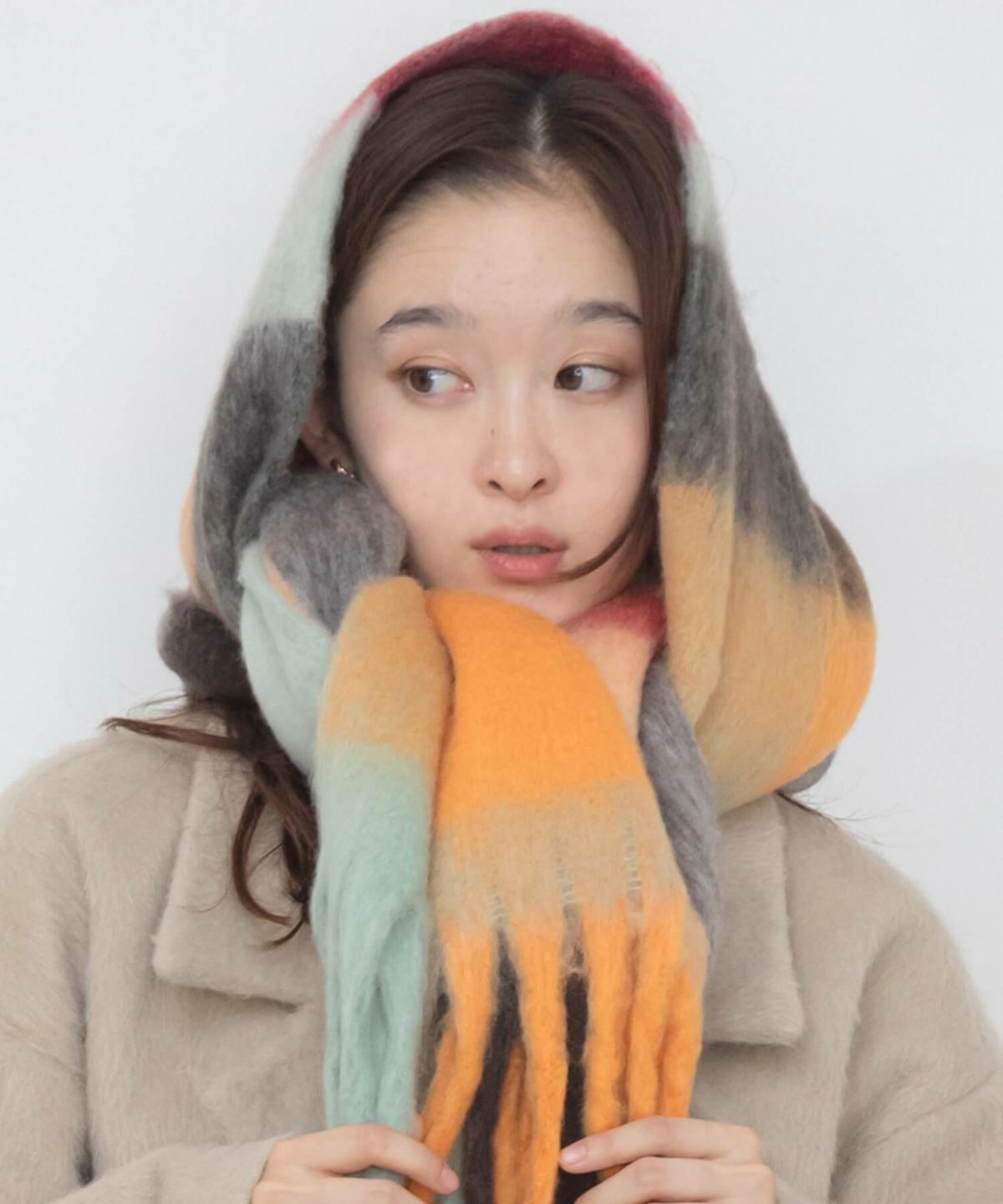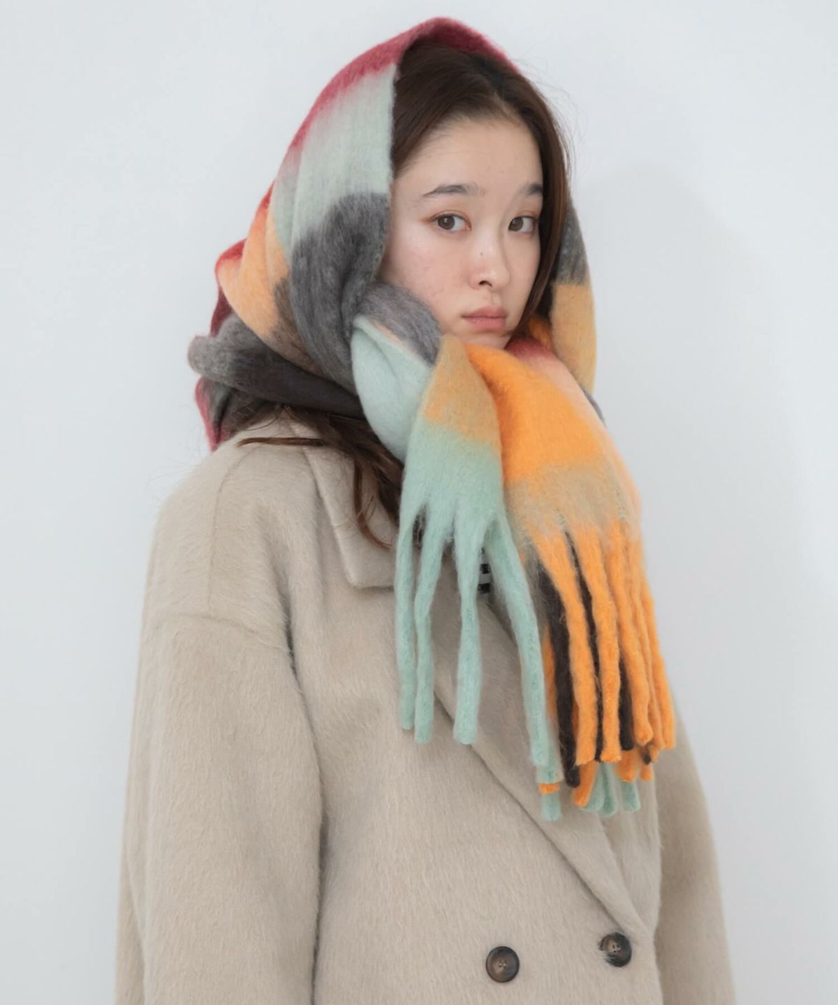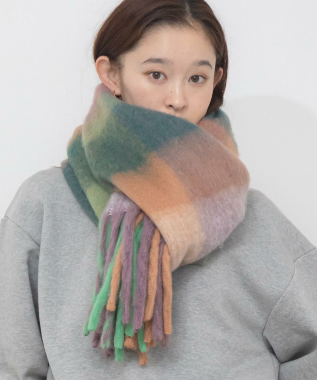 ふんわり柔らかいフェイクウールをたっぷり使用したボリューム感あふれるフリンジマフラー Volume Fringe Fake Wool Muffler