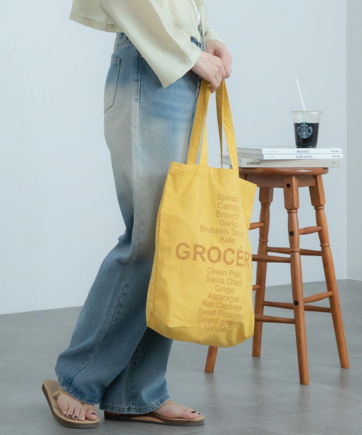 アンティークなカラーの可愛いトートバッグ Grocery Marche Tote Bag