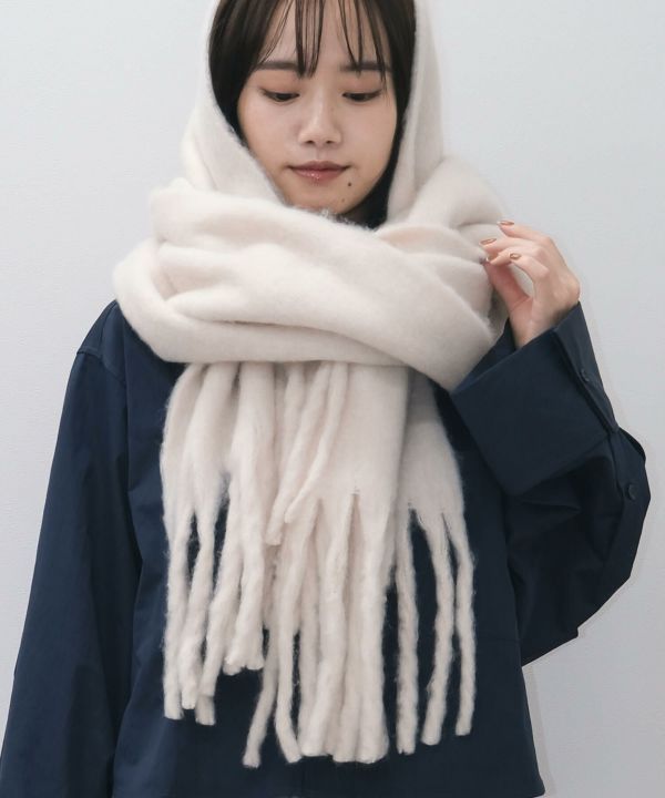 毛足の長い起毛感のある素材で顔周りをふんわり包みます。