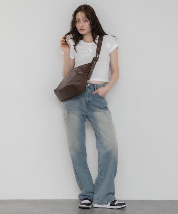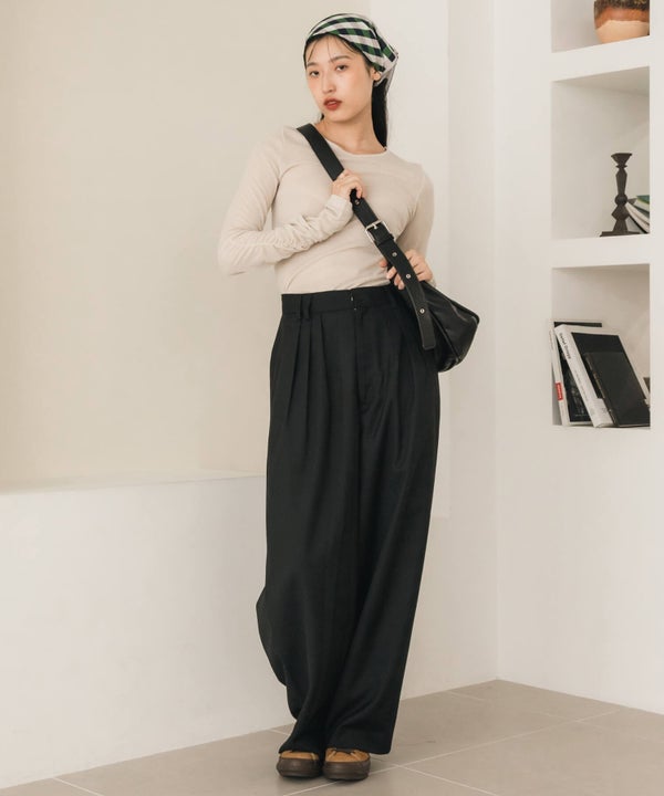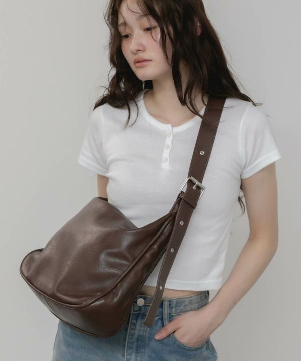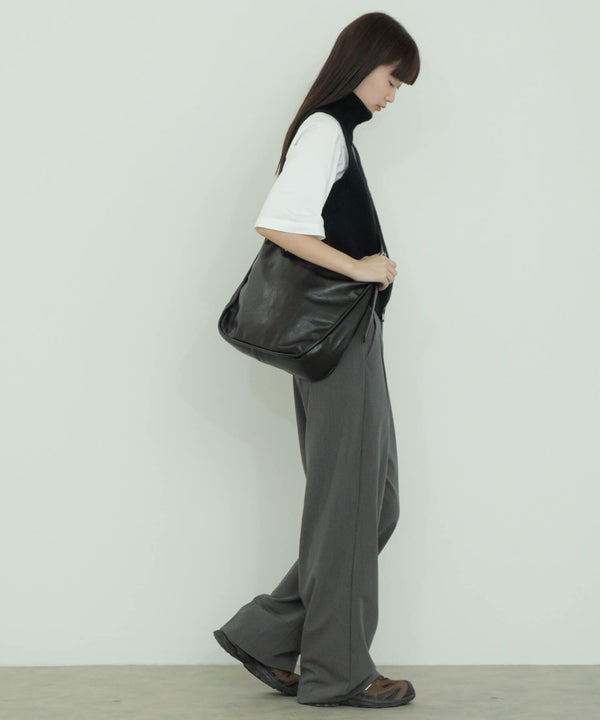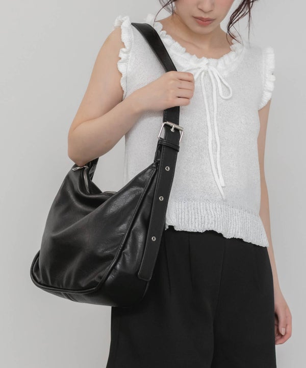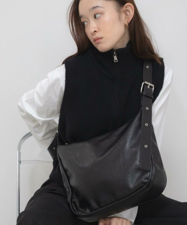 両側が調整できるダブルベルトのため肩掛け、ななめ掛けと2WAYで使用でき、カジュアル、モード問わず長さ次第で雰囲気を変えて使用できます。