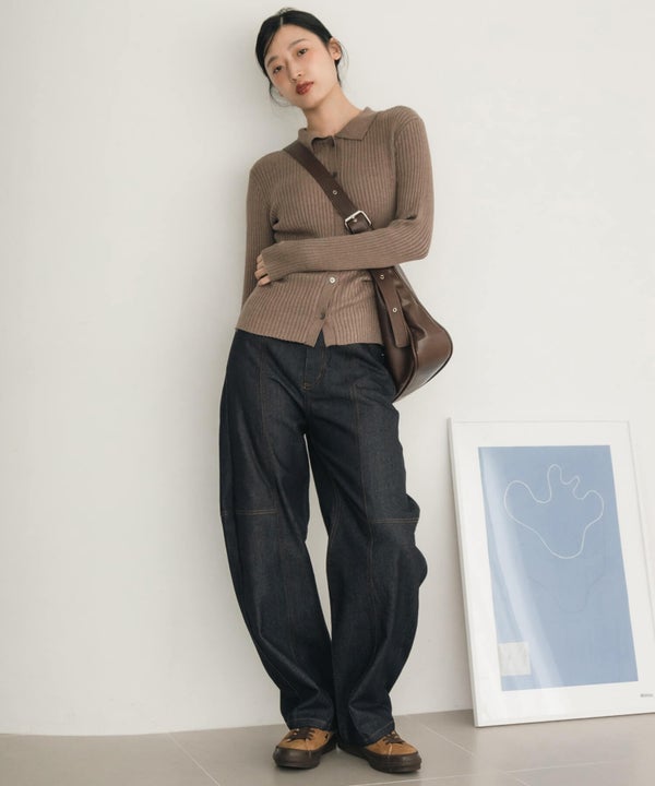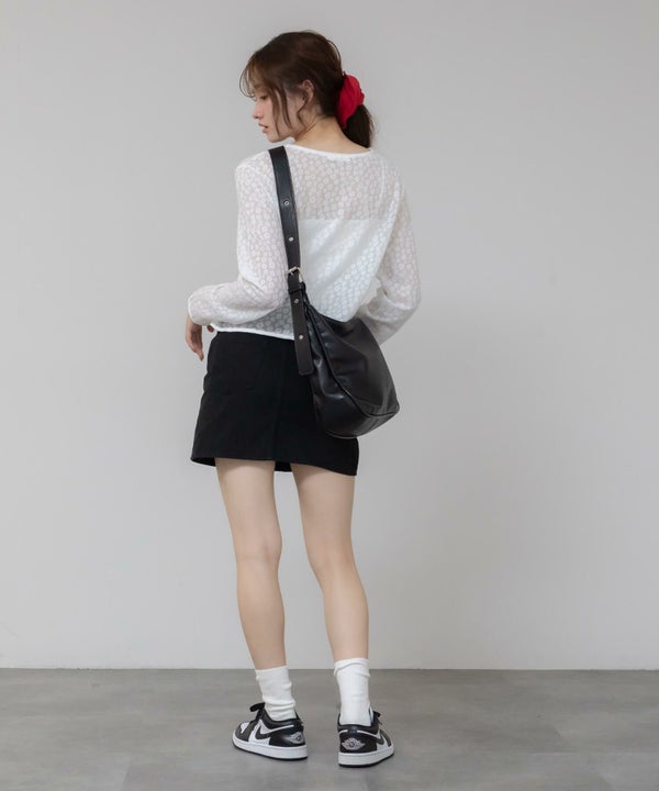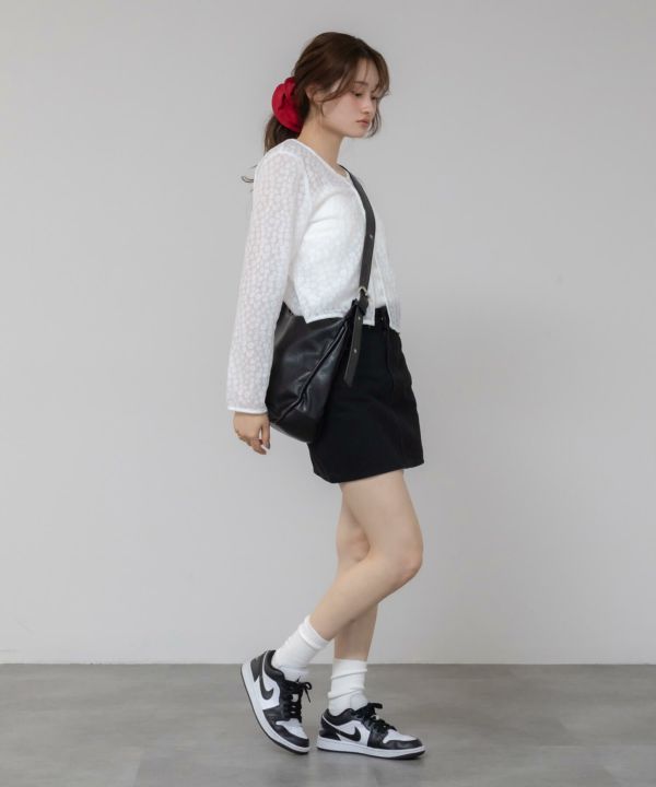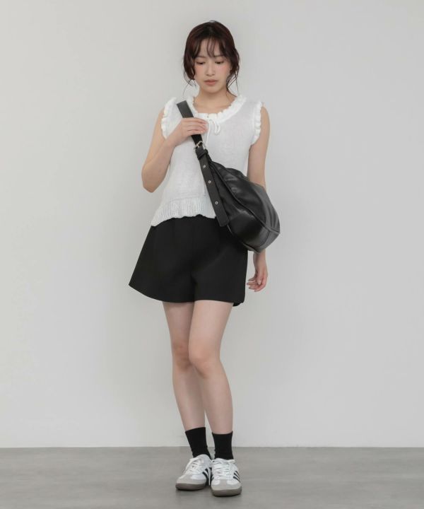 ショルダー部分のバックルベルトがスタイリングのアクセントに。