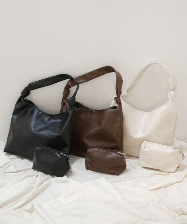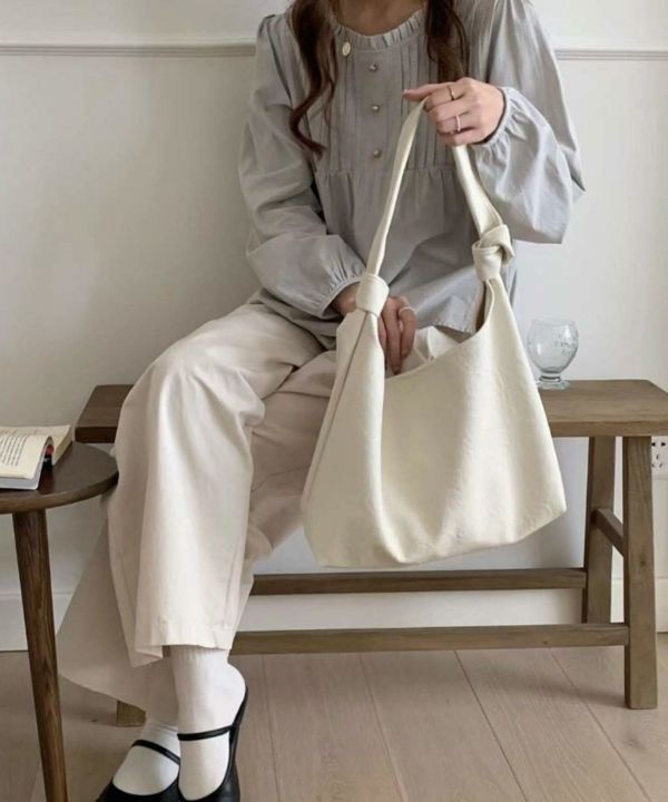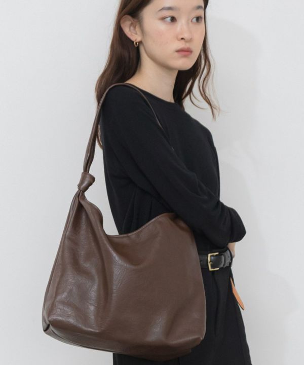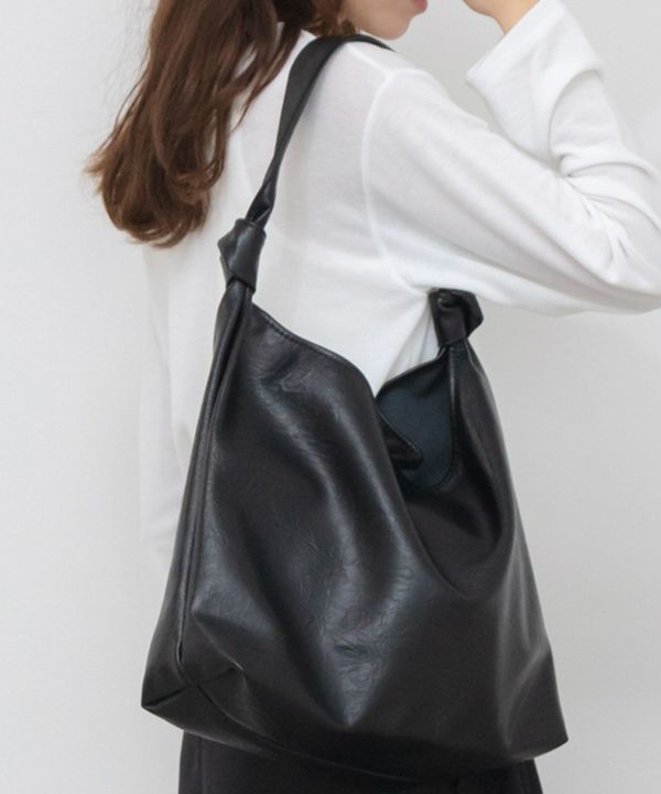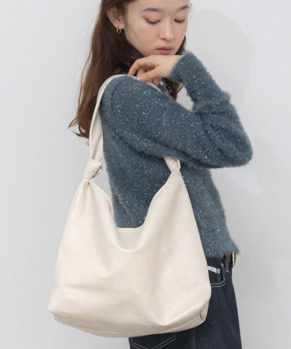 ショルダー部分の結び目デザインがスタイリングのアクセントに。