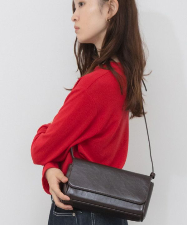 ・深めのマチなのでコンパクトな見た目ながら必需品はしっかり入る大容量サイズ・フラップ部分にはマグネットが付いていて安心です・内側、外側にポケットが1か所付いています・オンオフ問わず、オフィスカジュアルにもおすすめです・スクエアデザインをキープする型崩れしにくいしっかりとしたフェイクレザーを使用 シワが付きにくく雨の日も手入れしやすいのも嬉しいポイント。