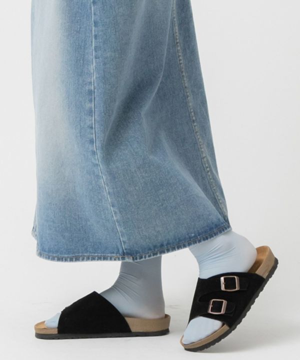 甲の高さや足幅はベルト部分で調節が可能なため、足の形を選ばず、幅広い方に着用いただけます。ソール部分はコルクのような素材でカジュアルさをプラス。