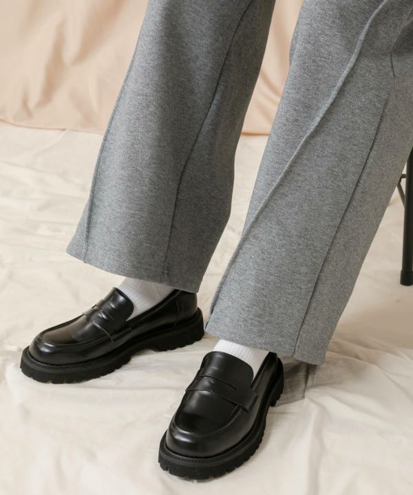 すっきりとしたフォルムに、ボリューム感のあるトラックソールを組み合わせたプレーンローファー。