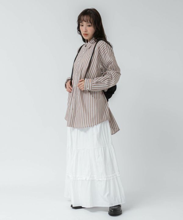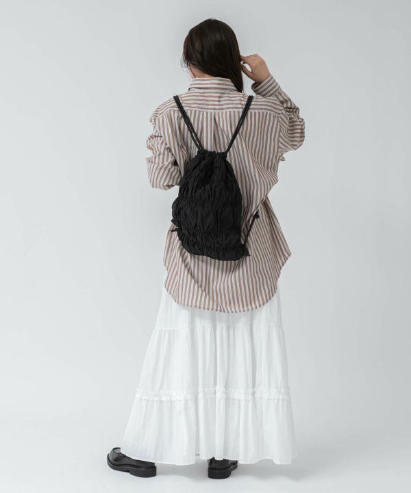 甘さを抑えたフレンチガーリーな着こなしには、コットンレースのチュニックやブラウスにロングスカートを合わせて、ナップサックをプラス。