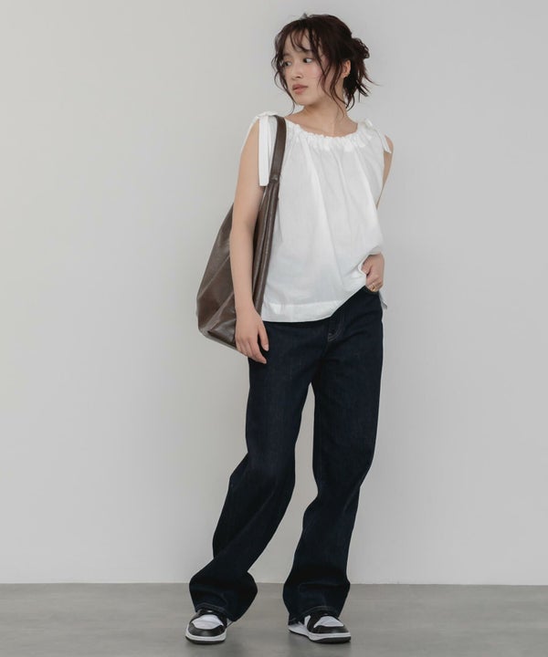 肩掛けで抜けすぎずすっきり見せてくれます。